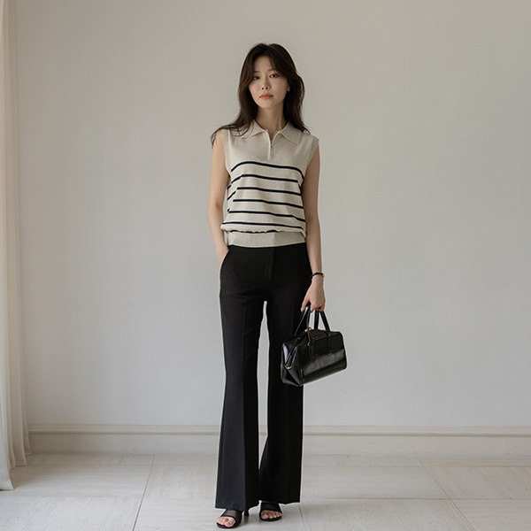 Stripe Polo Linen Sleeveless shirts Knit