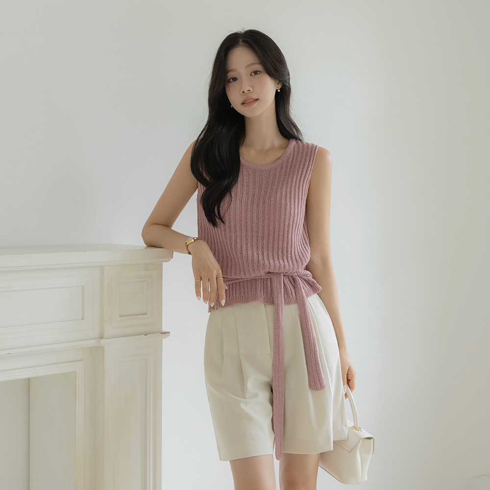 Wrap Strap Belt Summer Sleeveless shirts Knit
