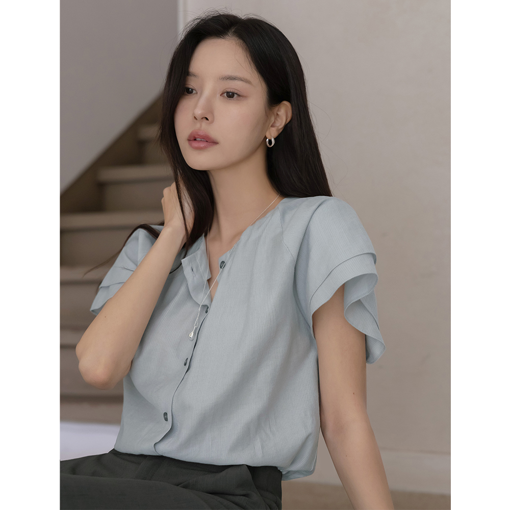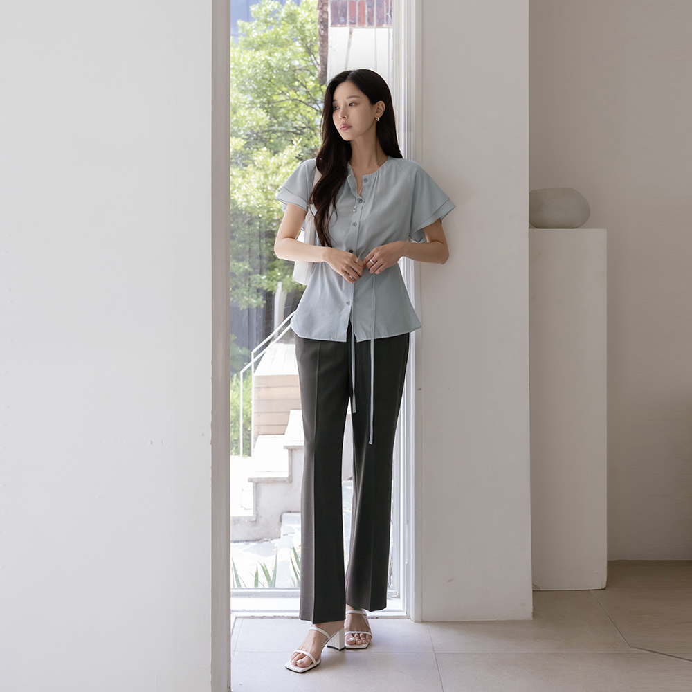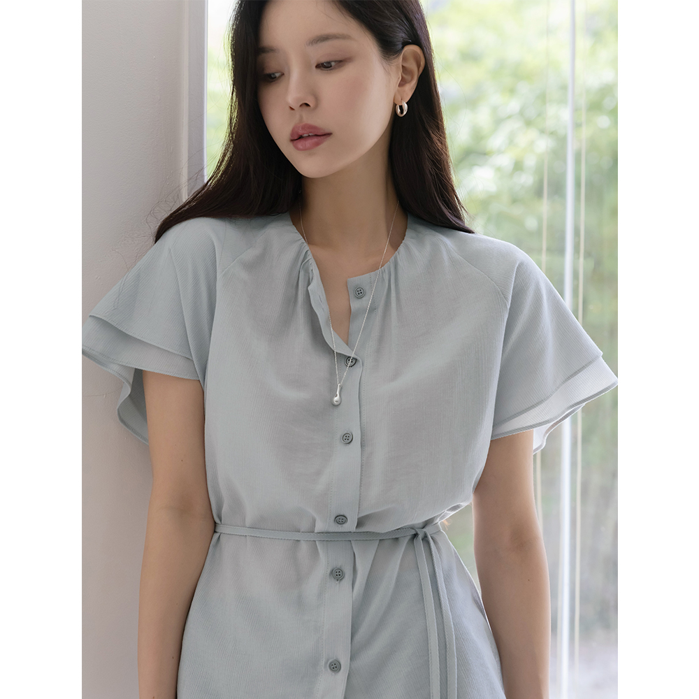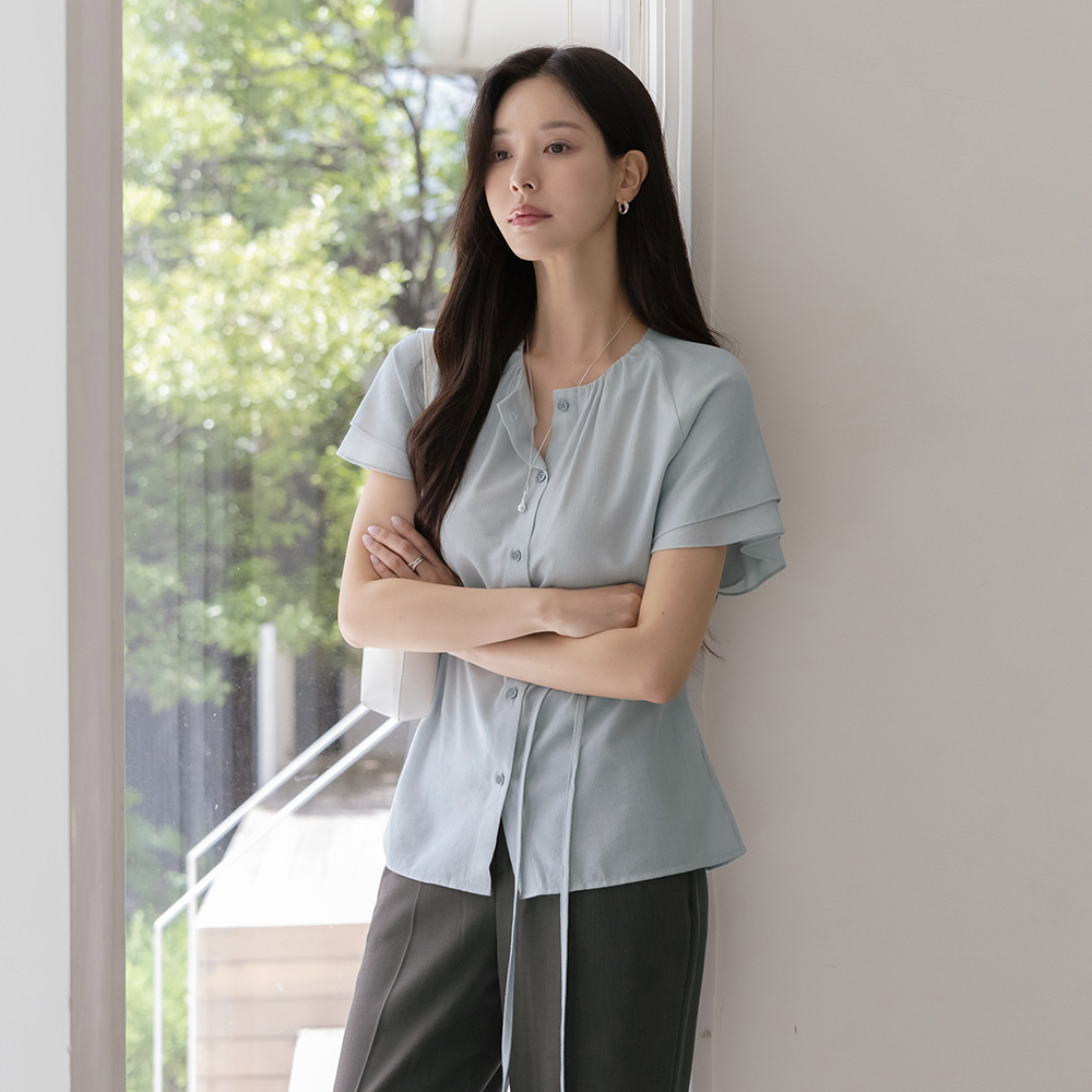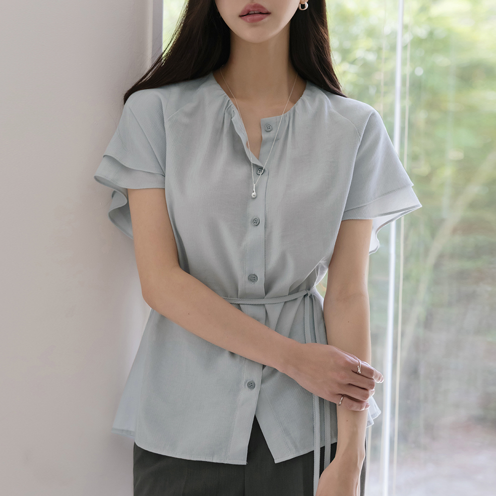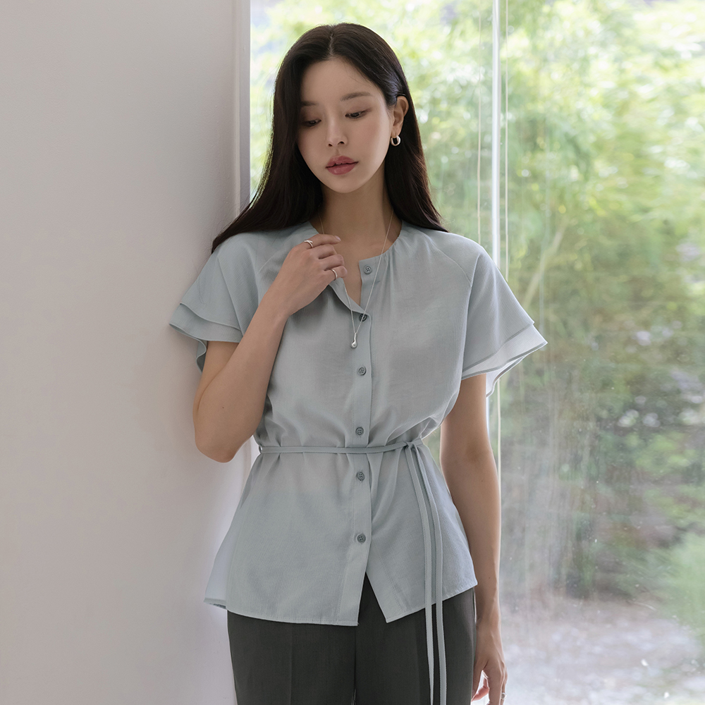 Noble Neck-Shirring Double Wing Sleeves Blouse(+Belt)