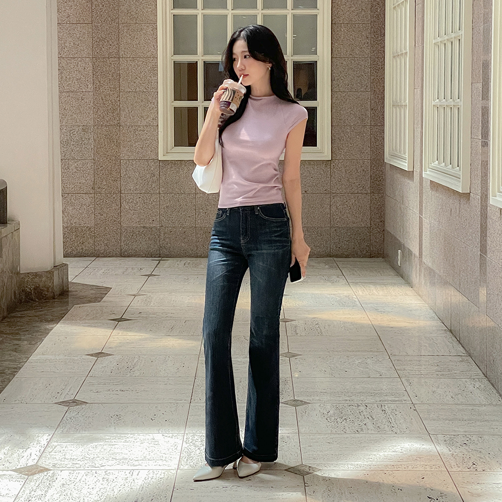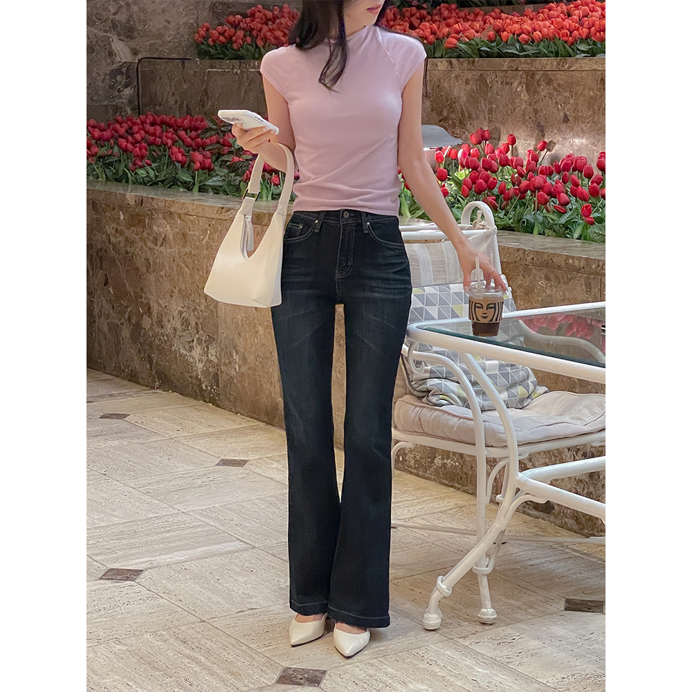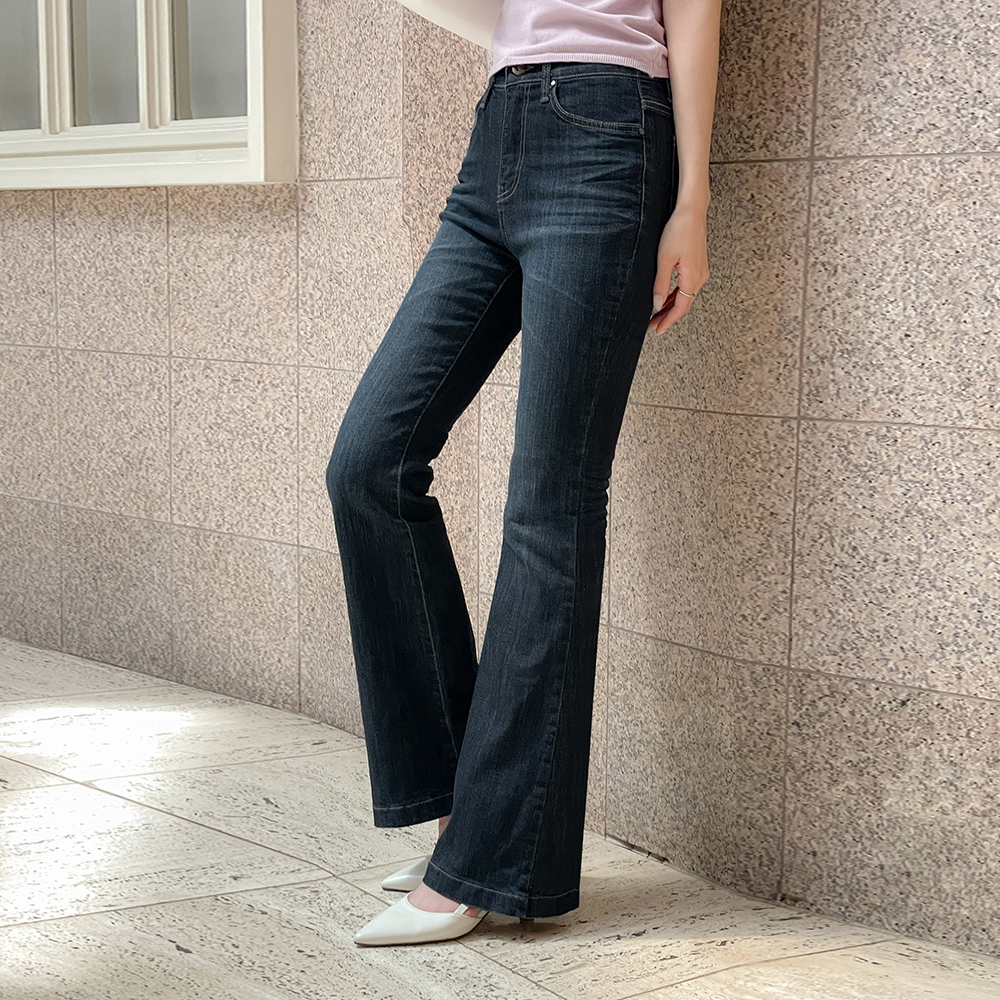 Tight Stretchy-Waist Boot-Cut Denim Pants