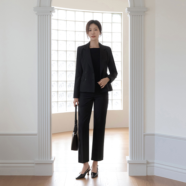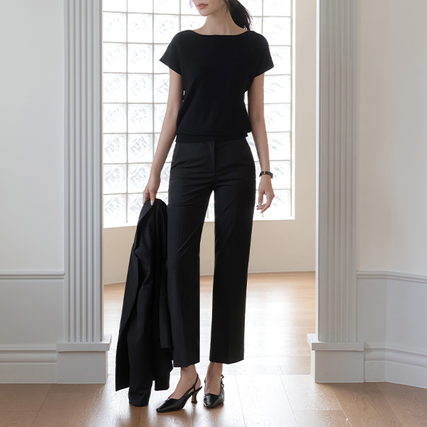 ruby Stripe Slim Fit Set-up Slacks