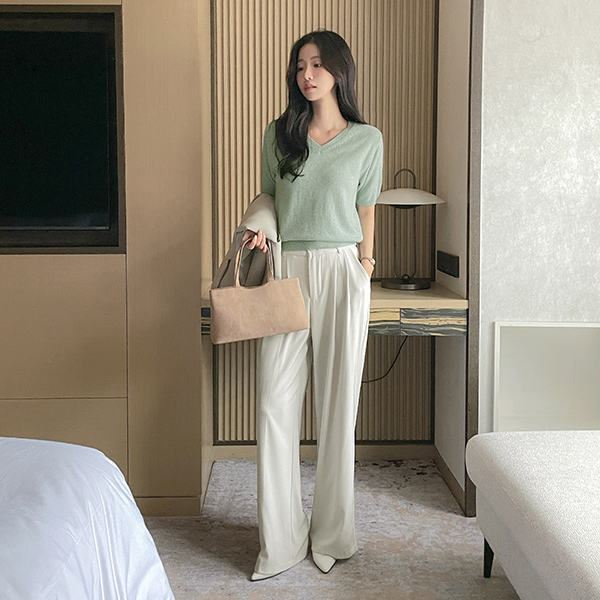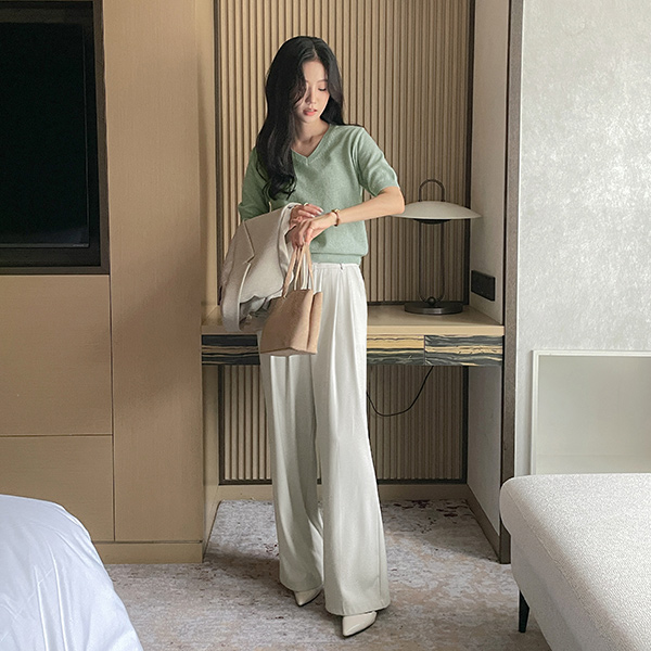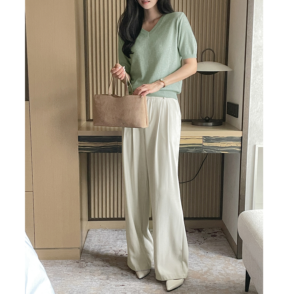Cashmere&Fine Wool VNeck Short-sleeve Knit