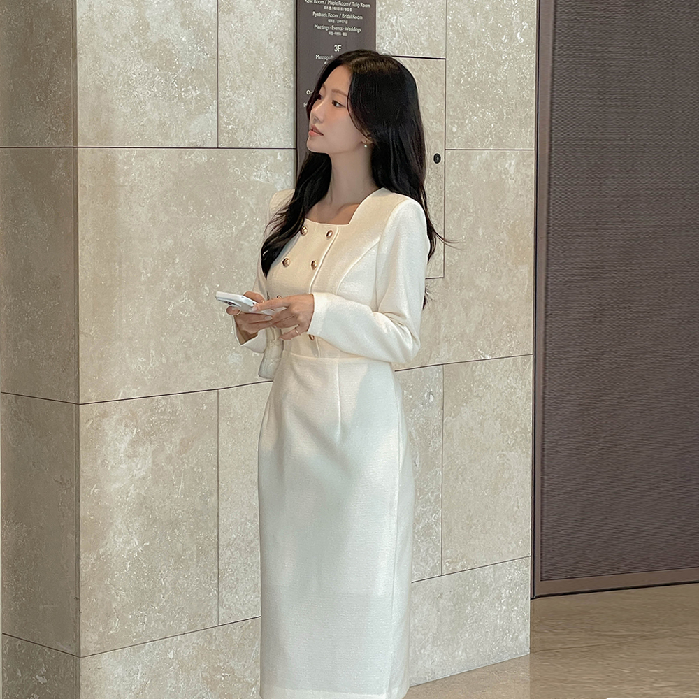 Tweed H-line Span Dress