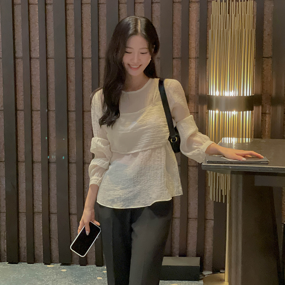 Wrinkle Bustier layered Style Blouse
