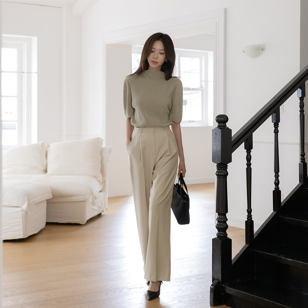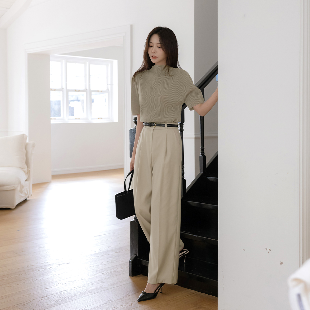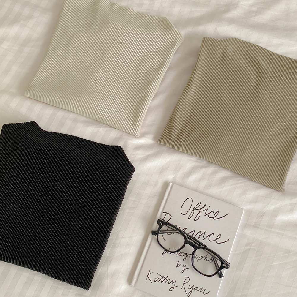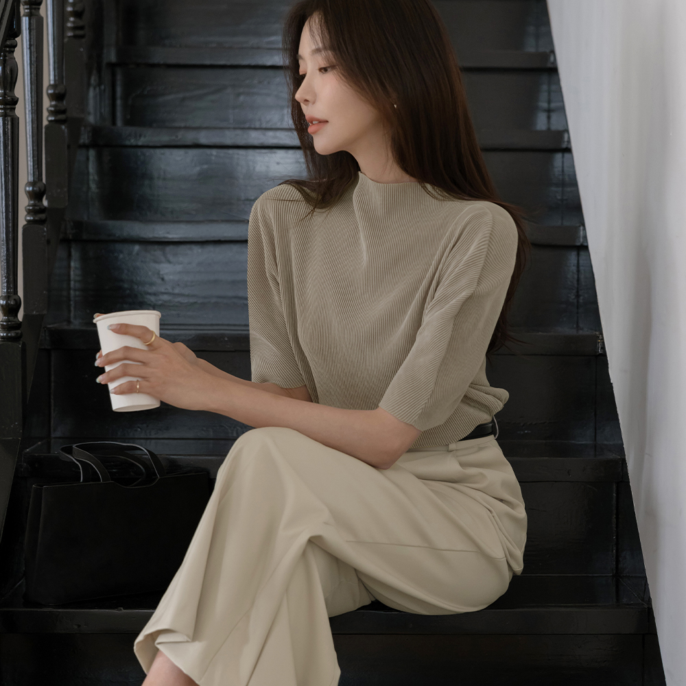 Half-Neck Velvet Pleats Short-sleeve T-shirt