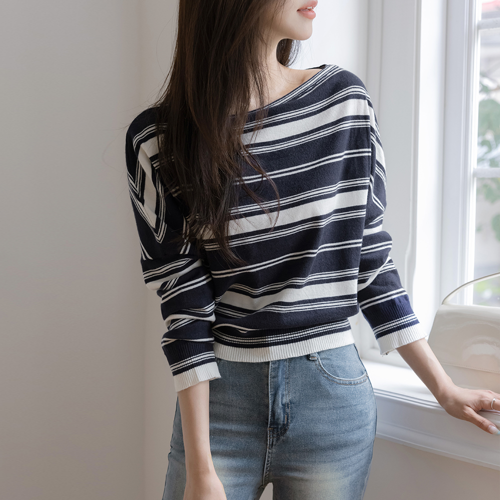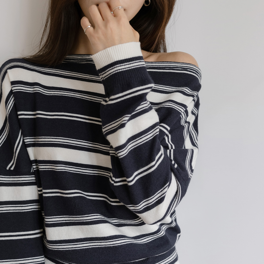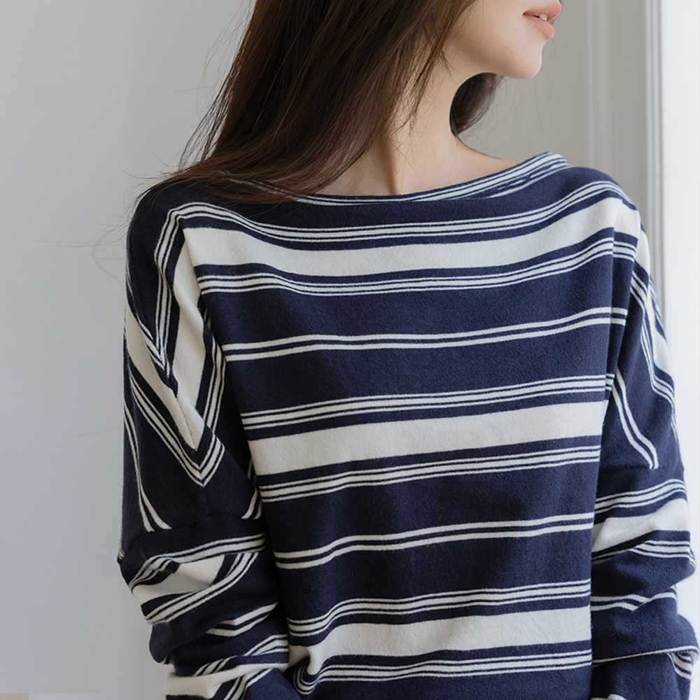 Casual Lip-Neck Stripe Knit