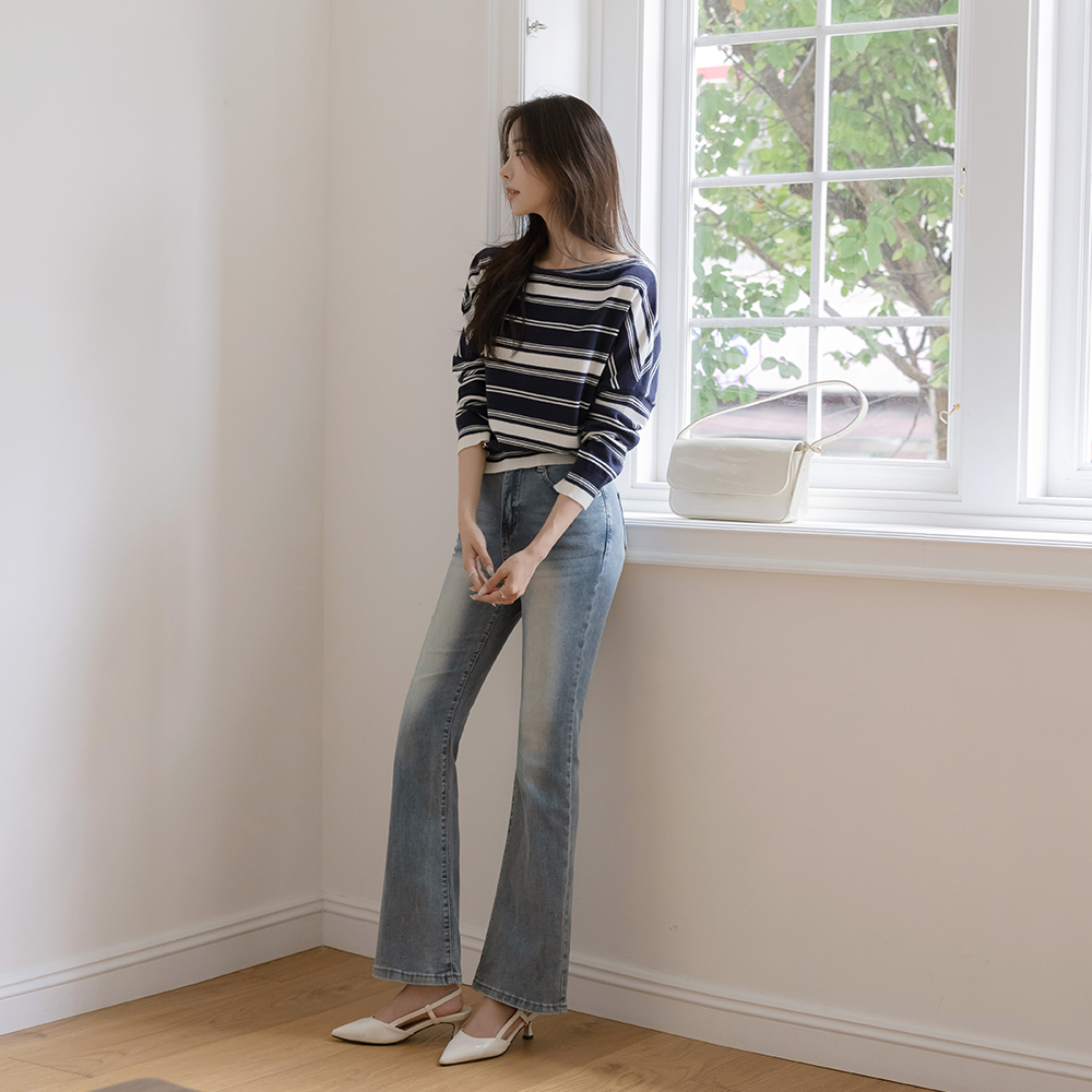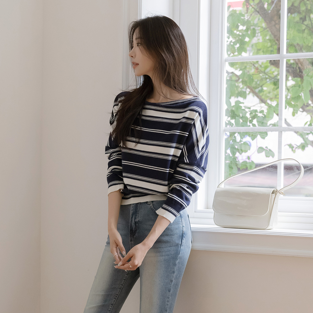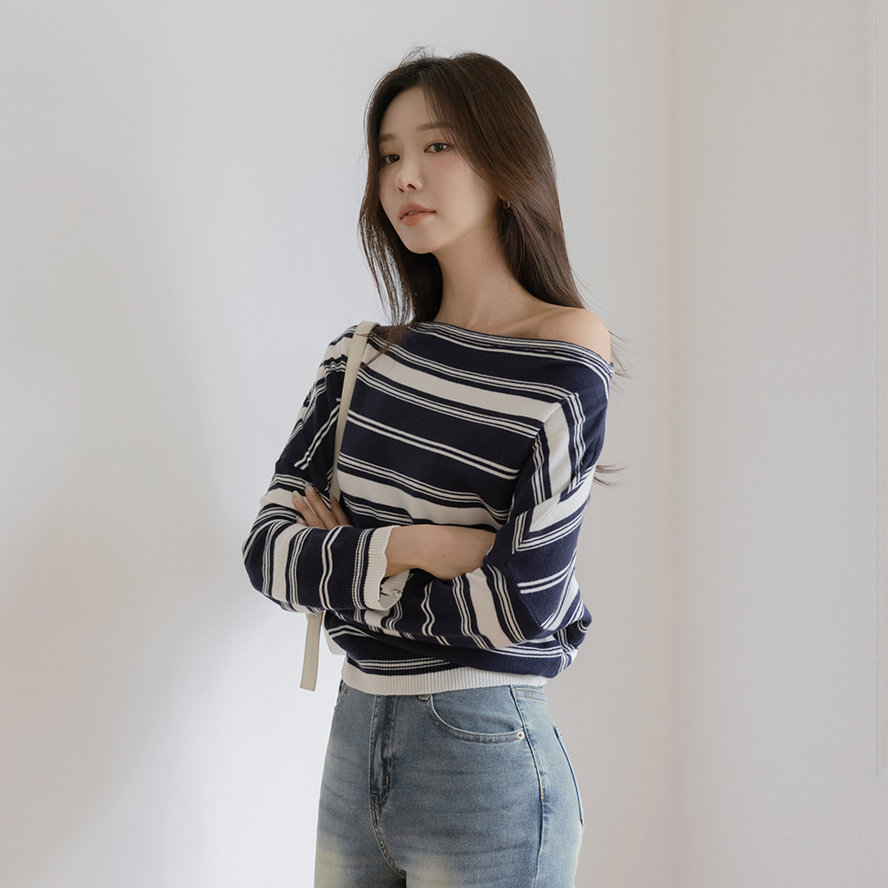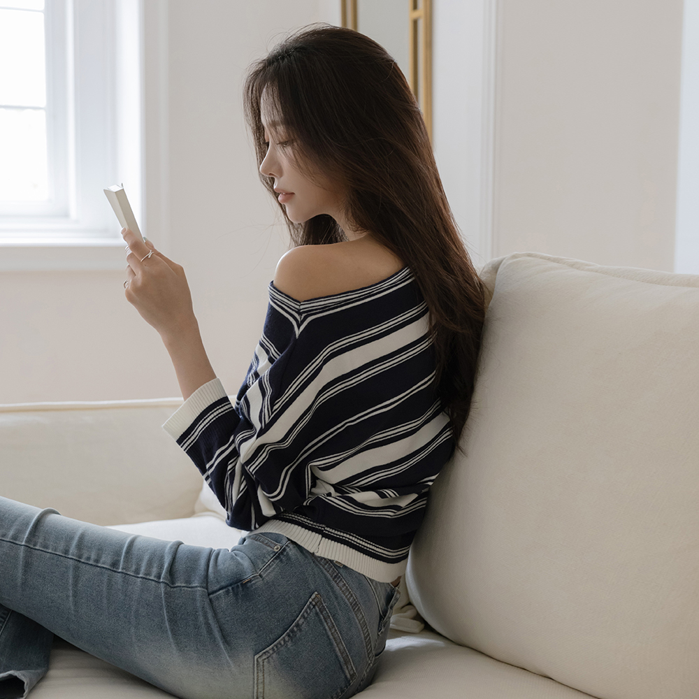 Casual Lip-Neck Stripe Knit