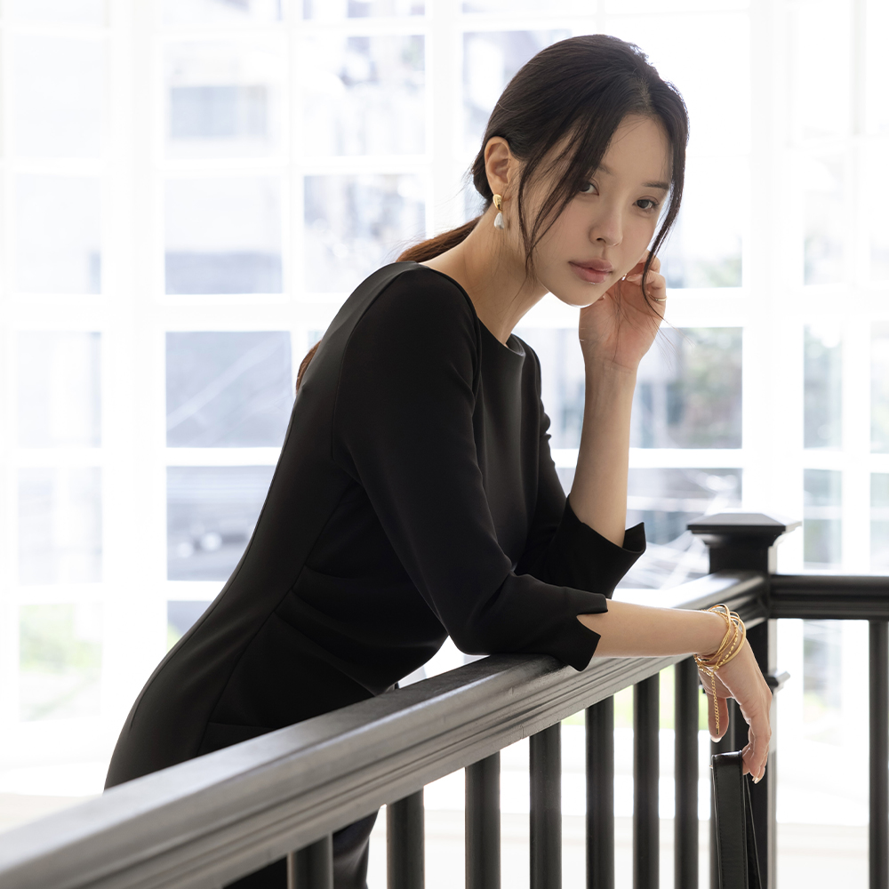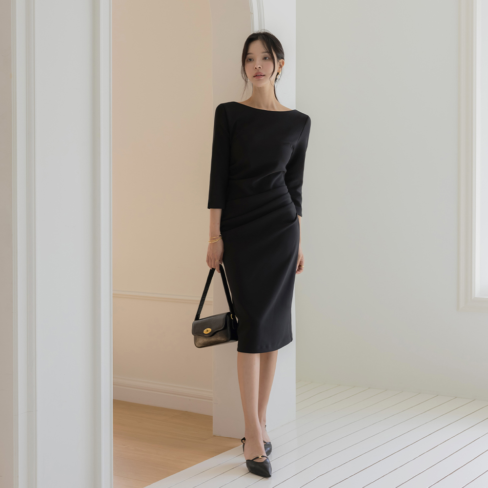 [O:neul] Cover Shirring 여리넥 I Like Span Dress