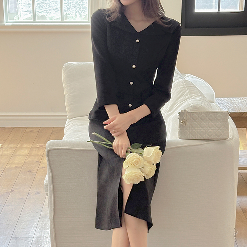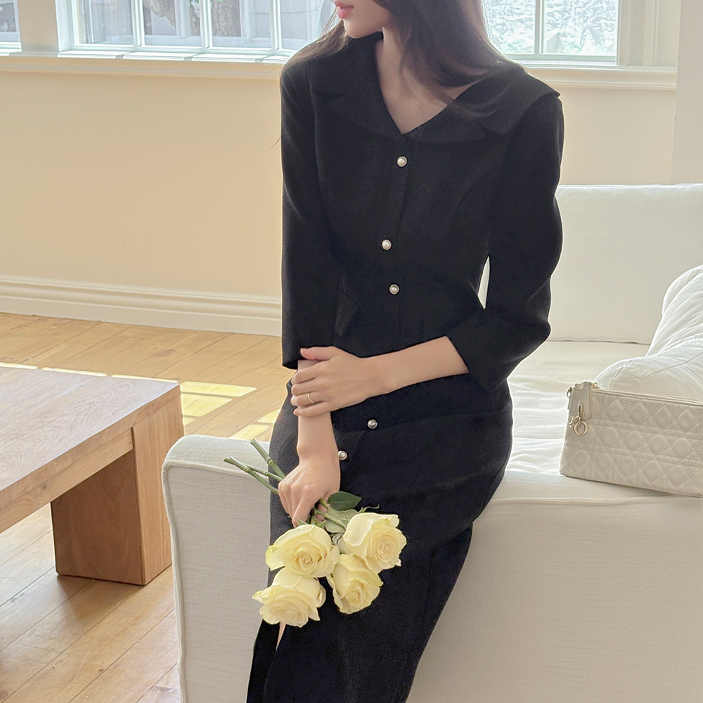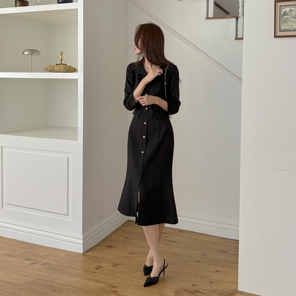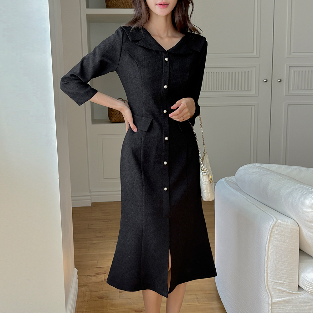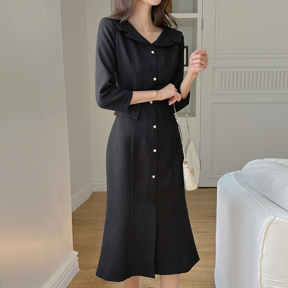 Classic Collar Mermaid Tweed Dress