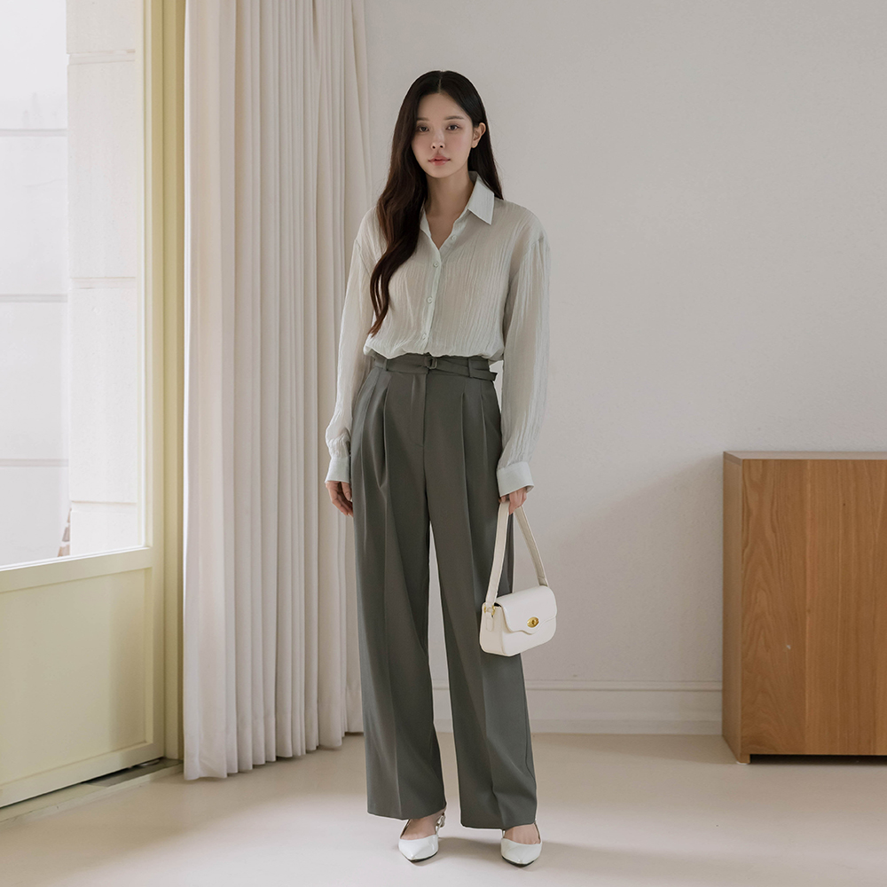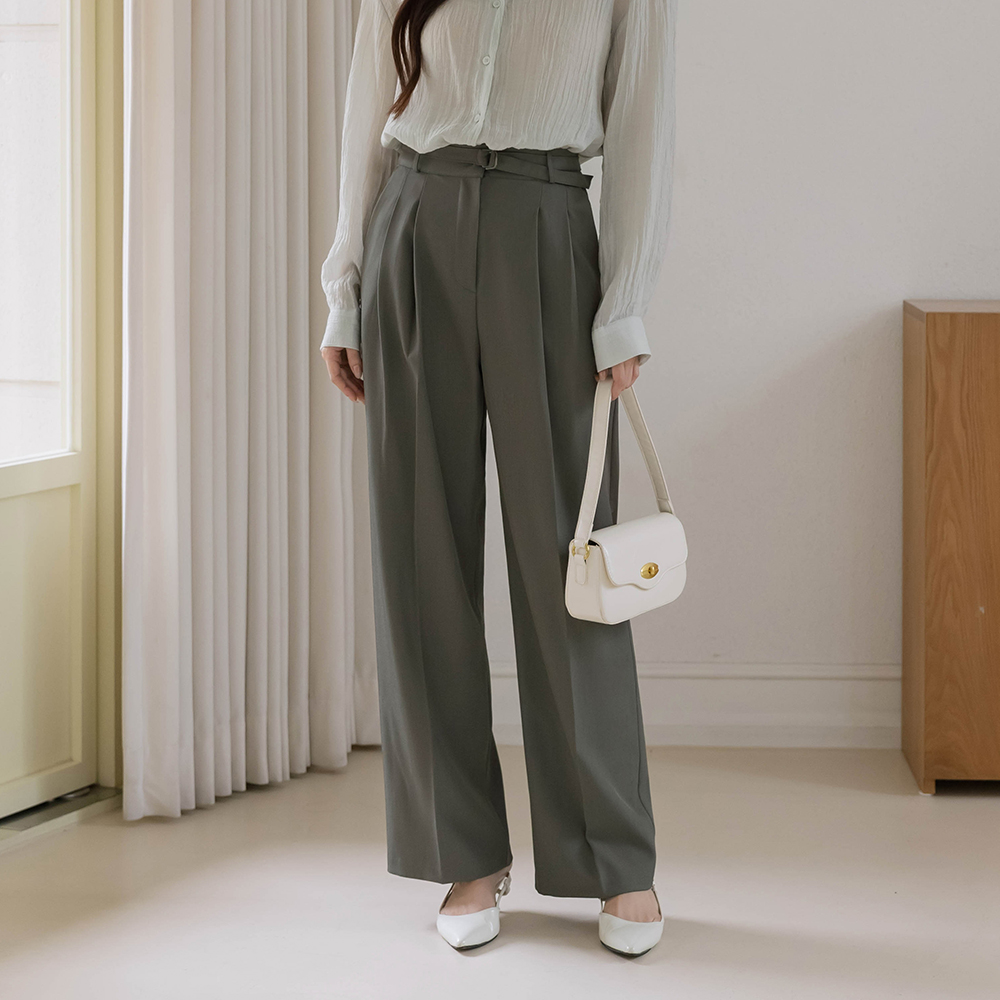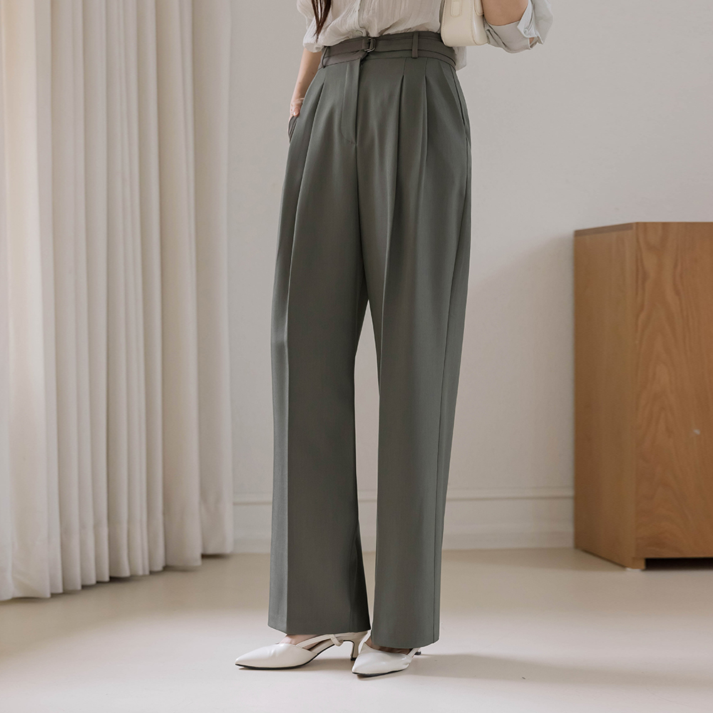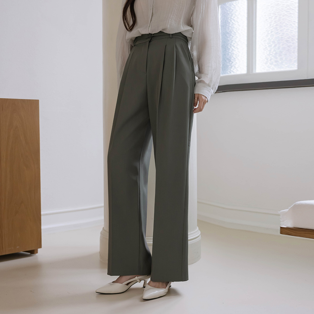 pie pintuck wide fit Slacks(+Belt)