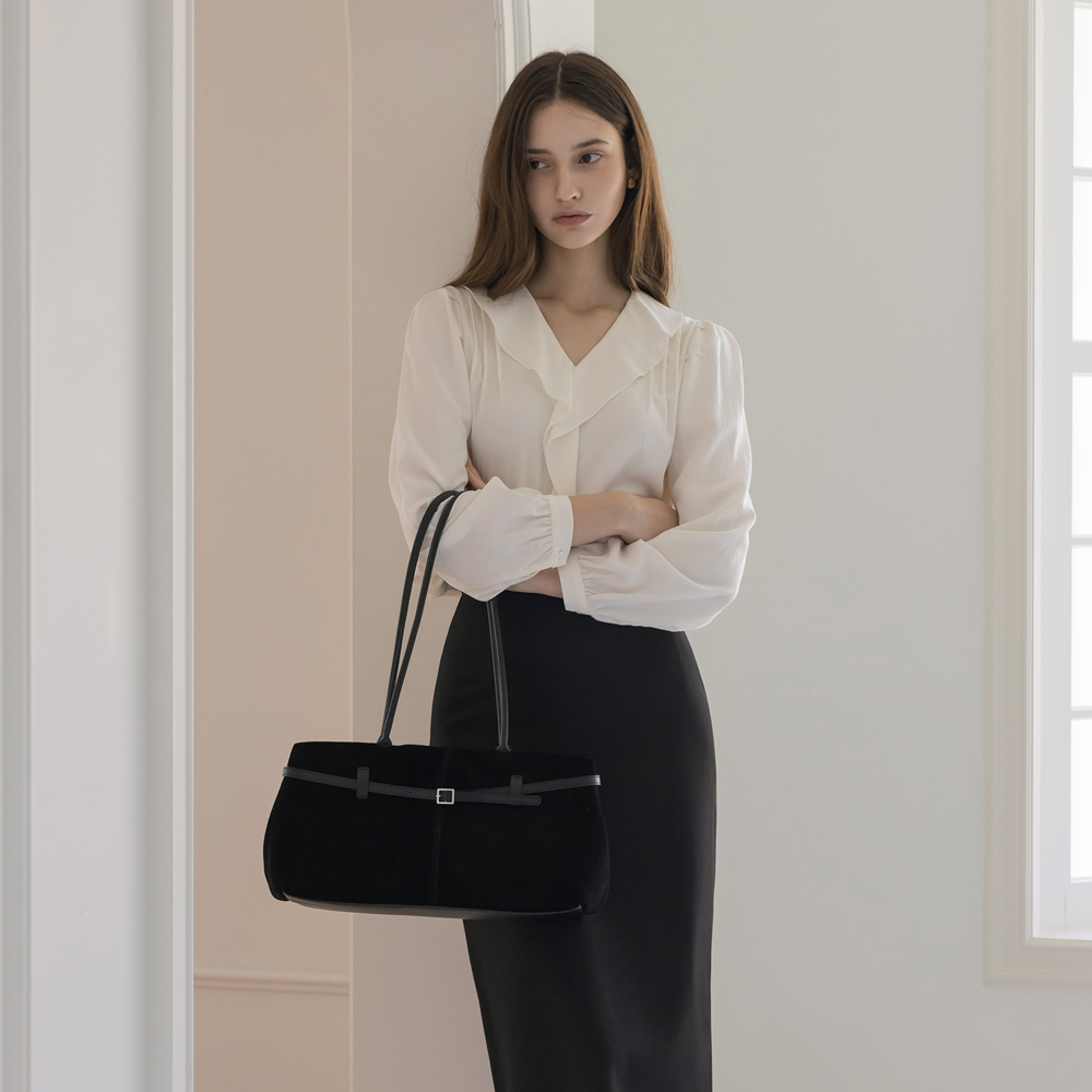 Shirring Wrinkles Color Combination Blouse(+Scarf)