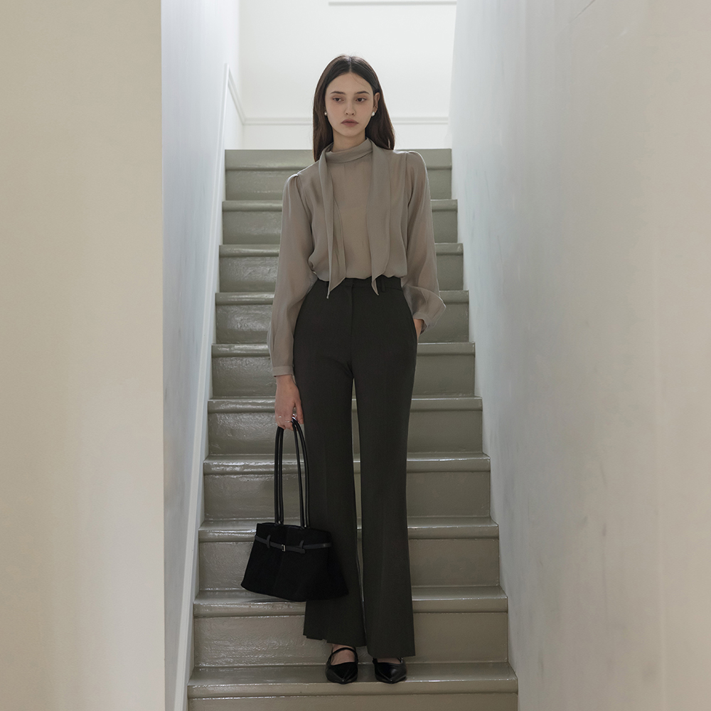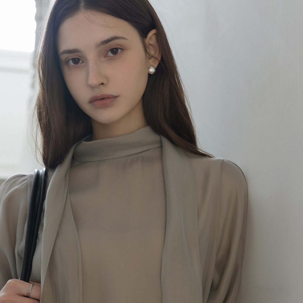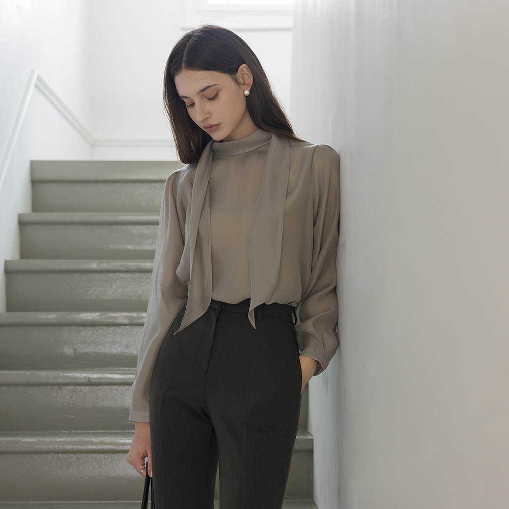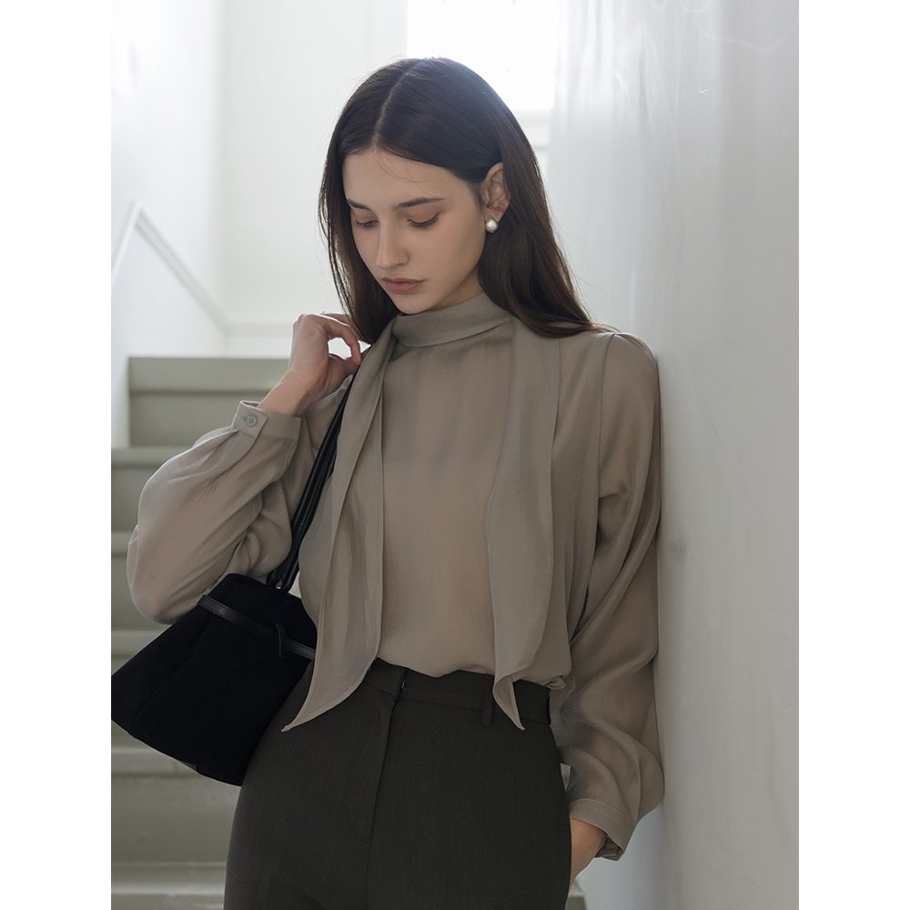 See-through Tie Neck Blouse