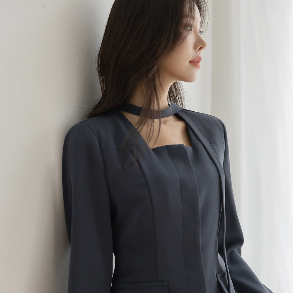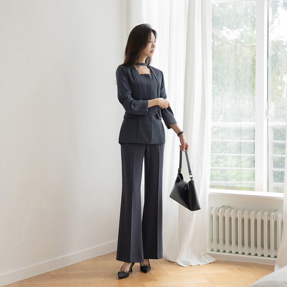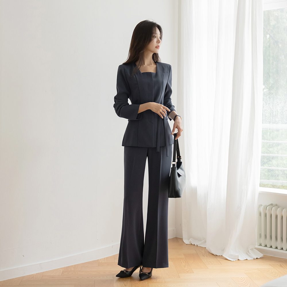 Laura Square Neck Set-up Jacket(+Scarf)