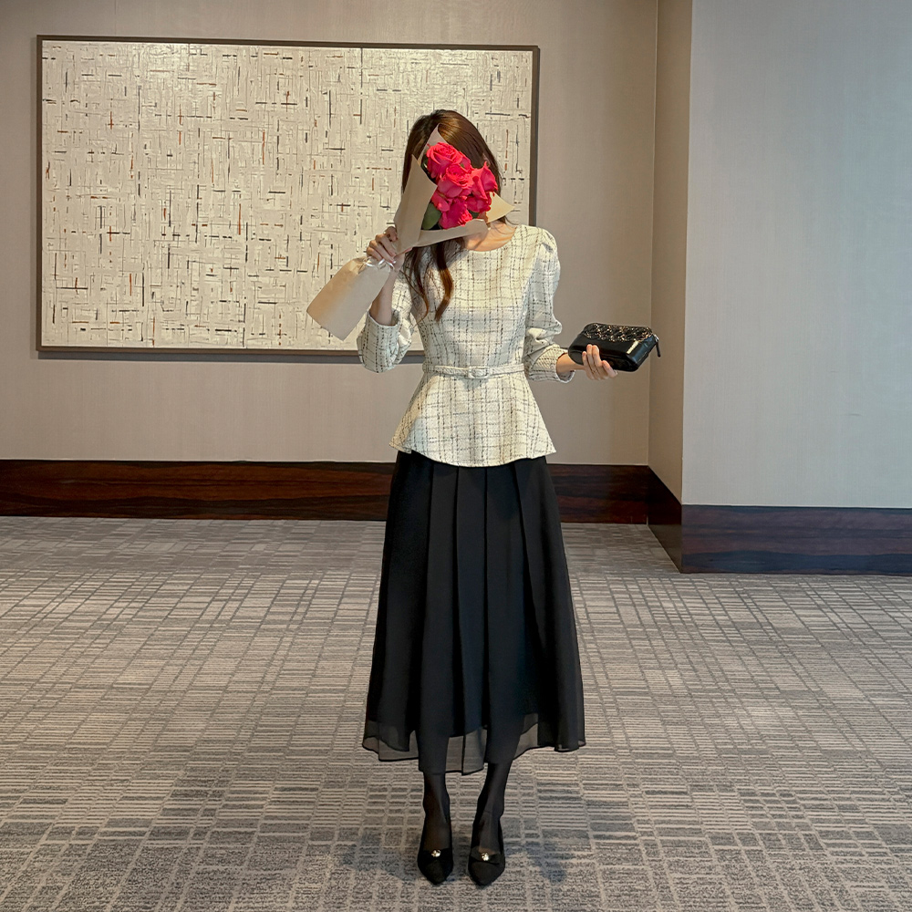 Check Tweed Peplum Blouse(+Belt)