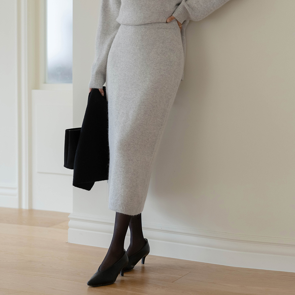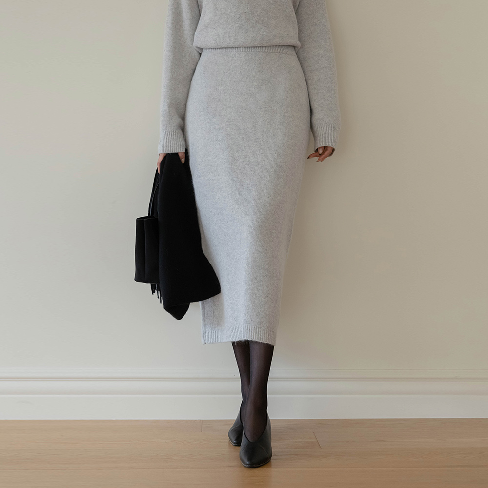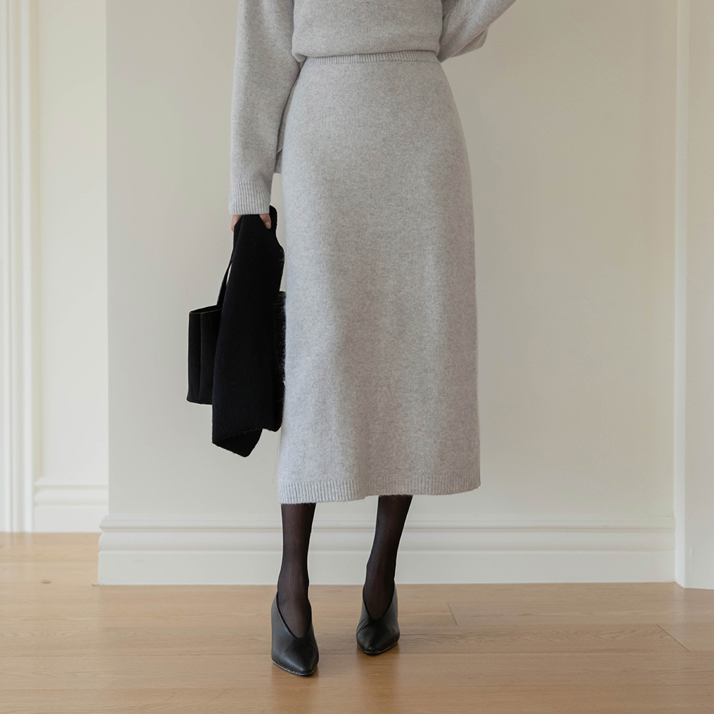 Cozy raccoon Set-up Long Knit Skirt