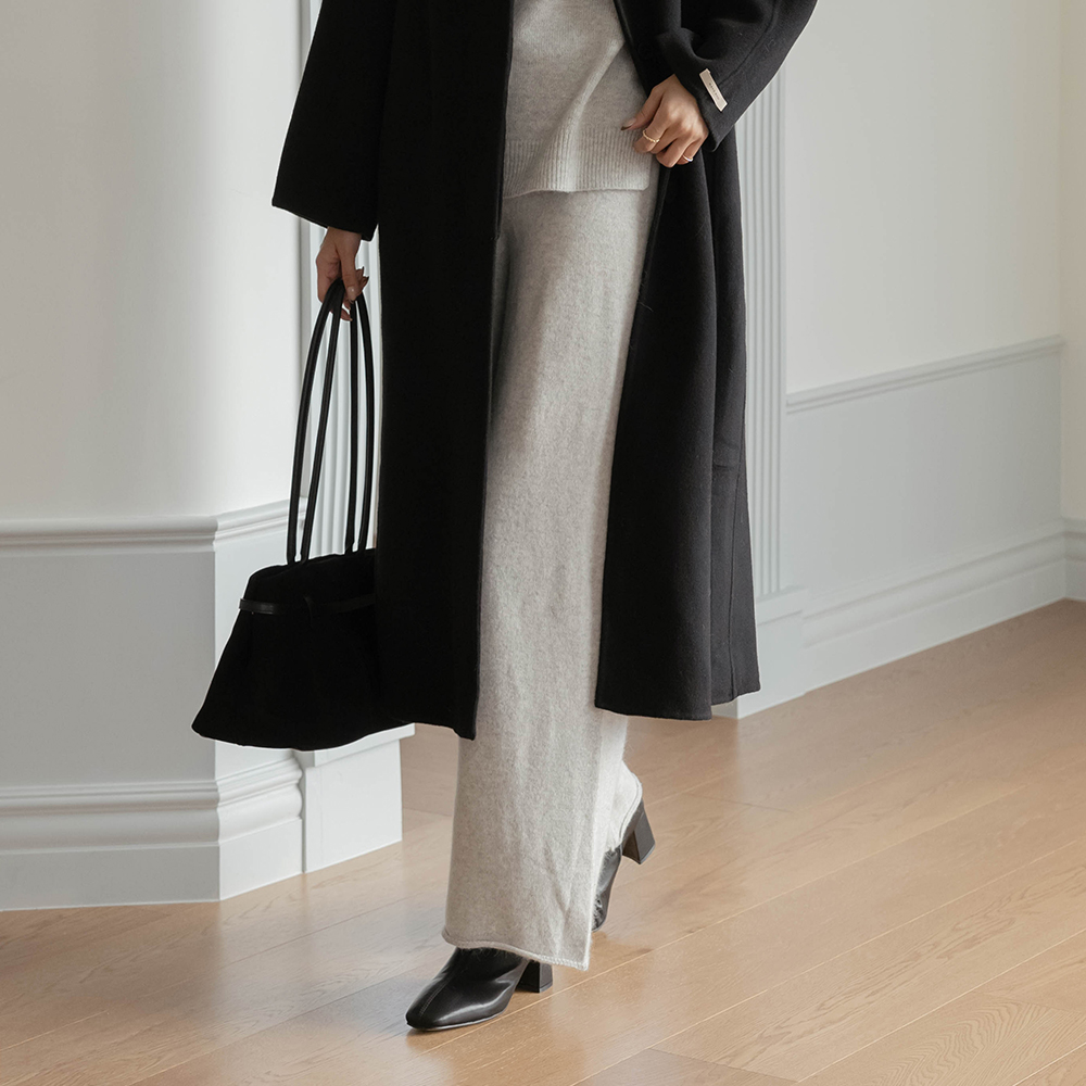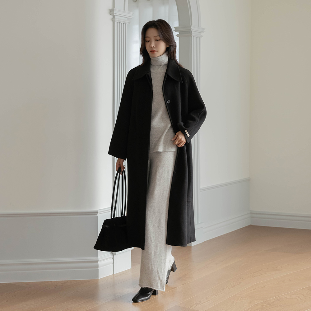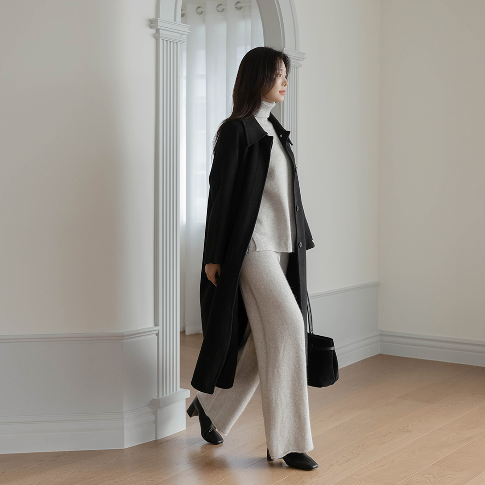Cozy raccoon Turtleneck Strap Belt Set-up Knit