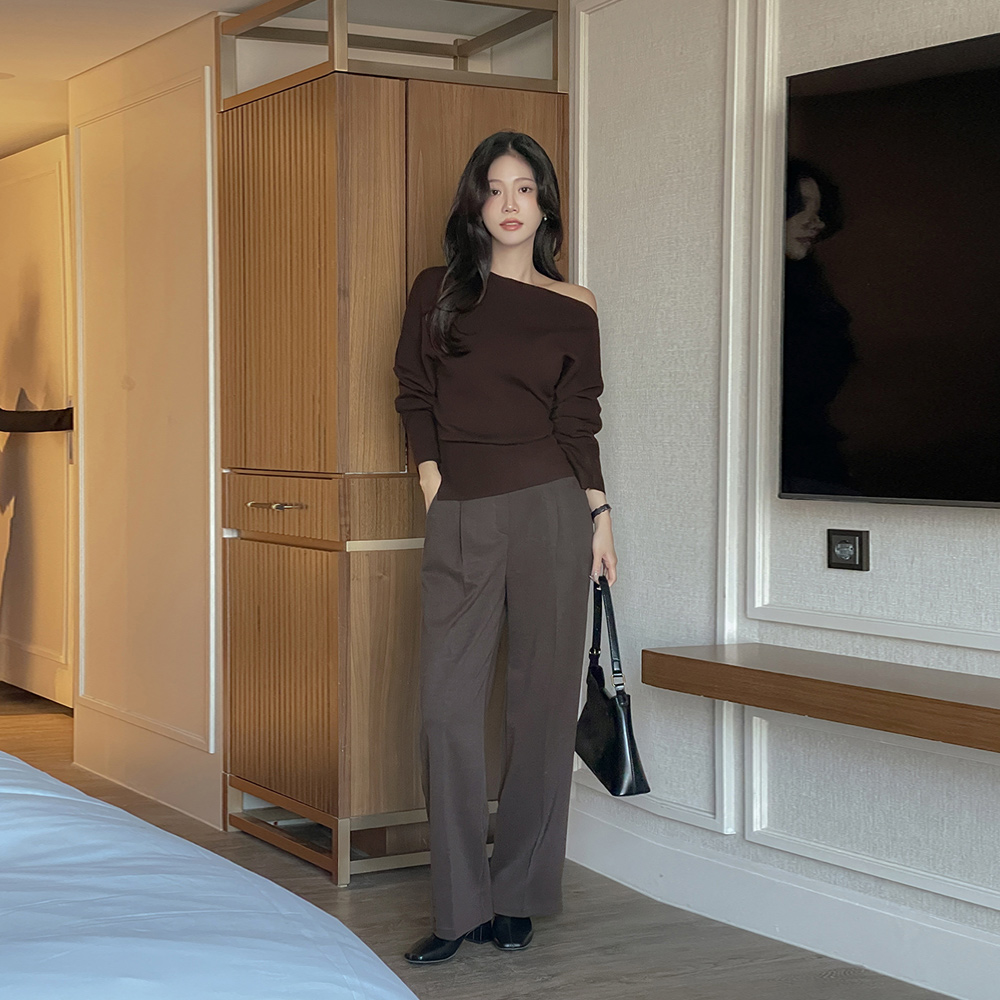 Two-way Shoulder Unbalance Wool Knit