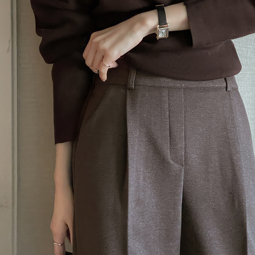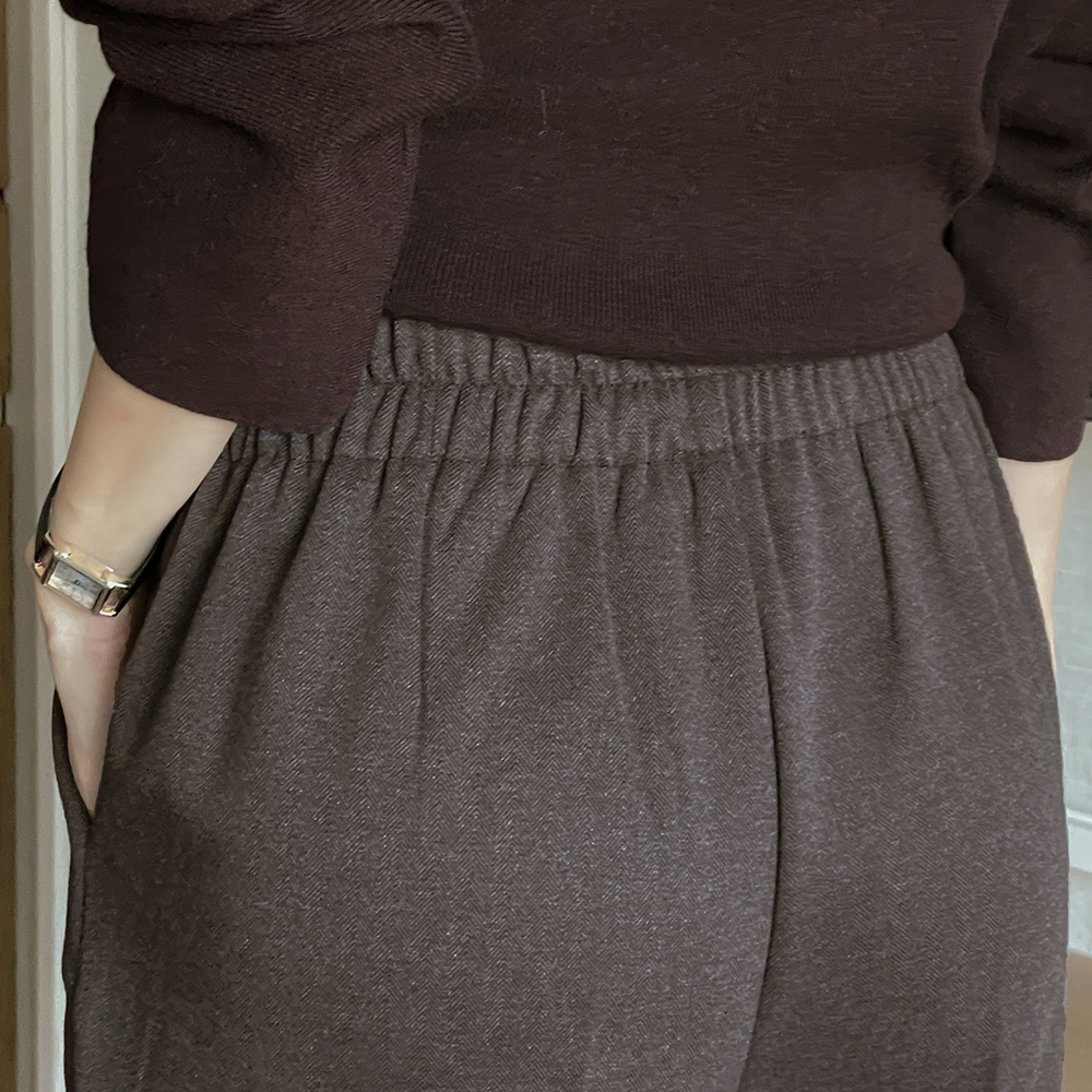 Herringbone Slim Fit Pintuck Fleece Slacks