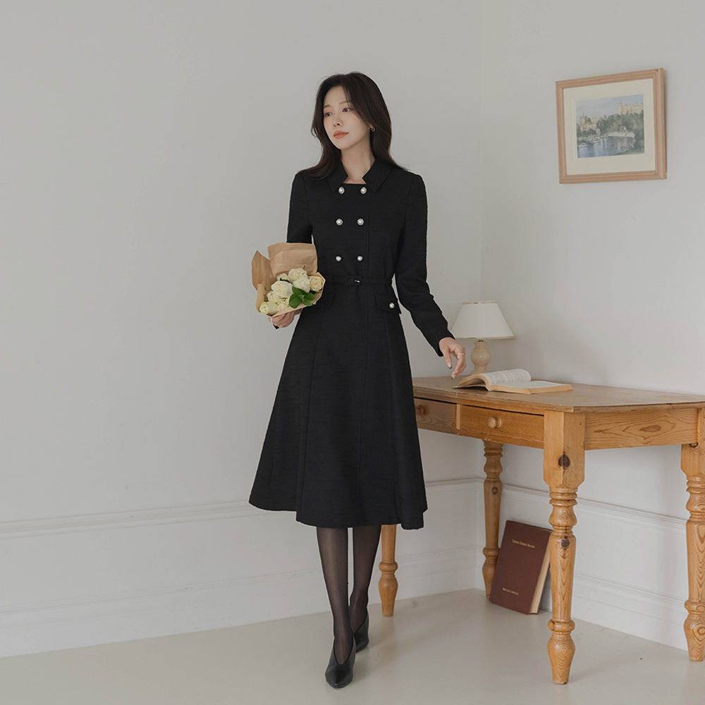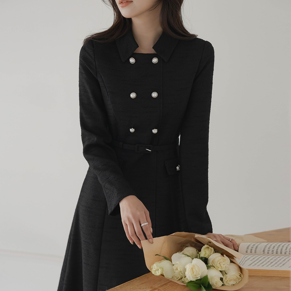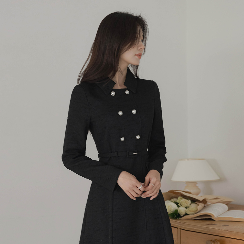 Feminine Pearl A-line Tweed Dress(+Belt)