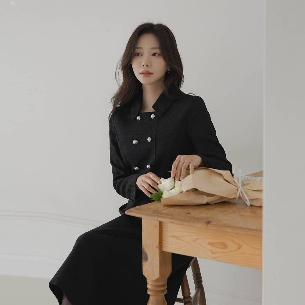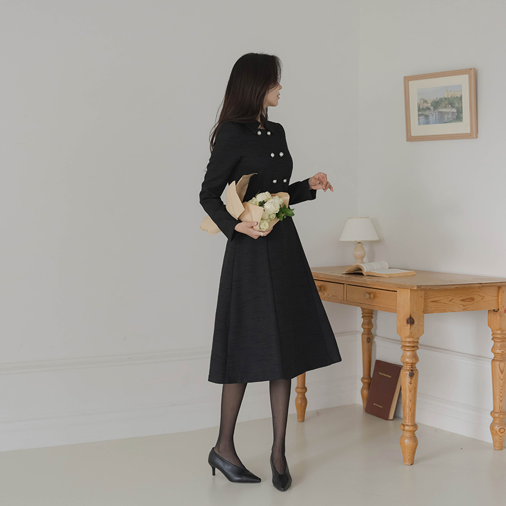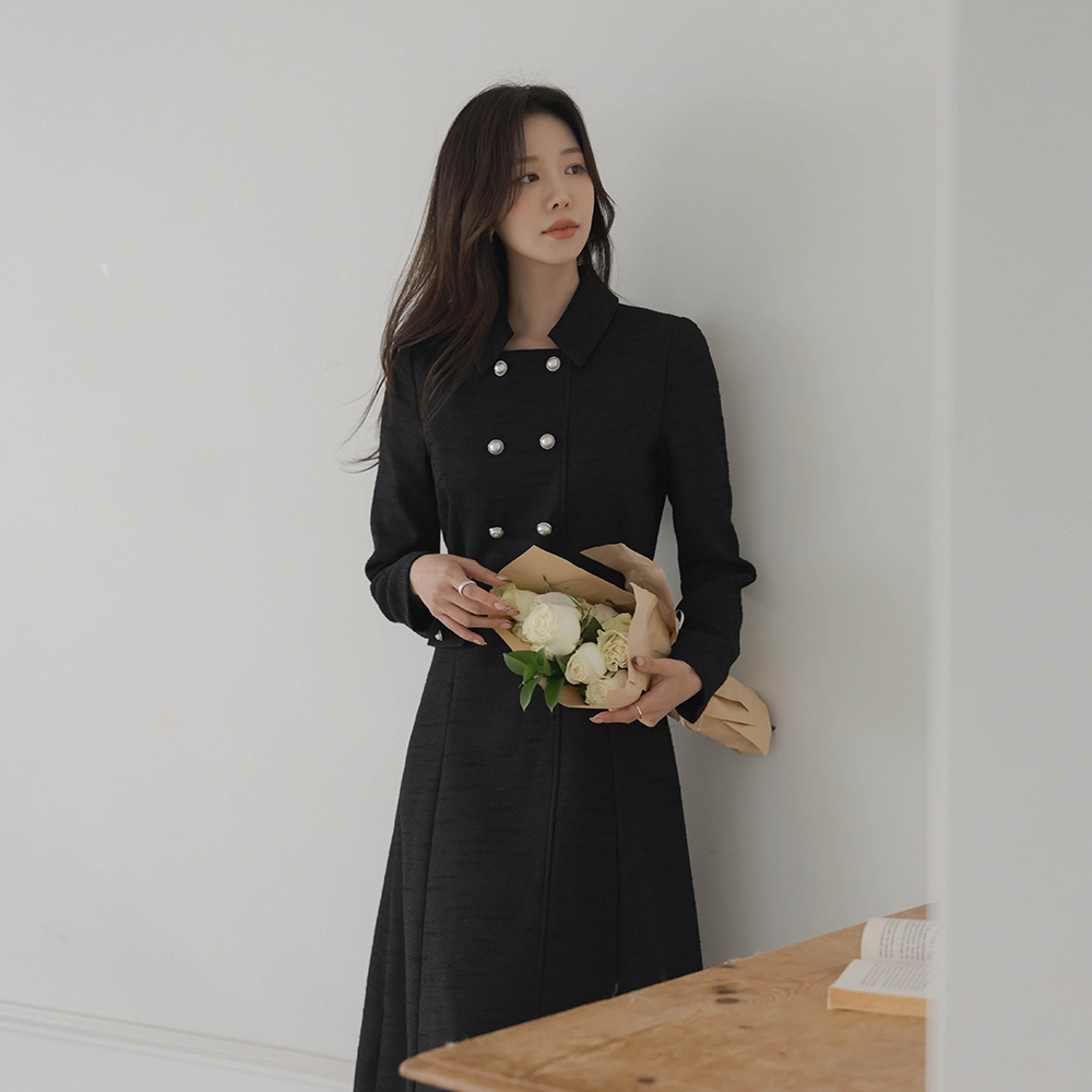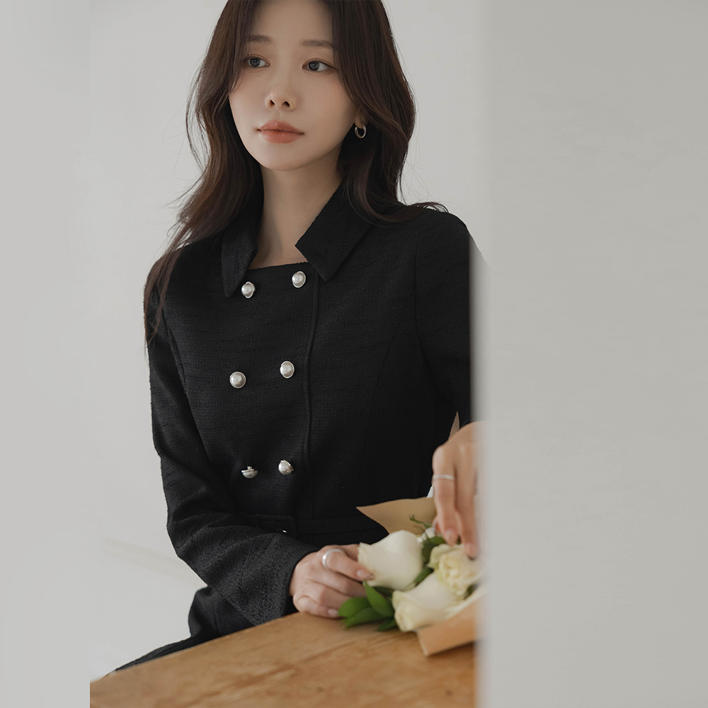 Feminine Pearl A-line Tweed Dress(+Belt)
