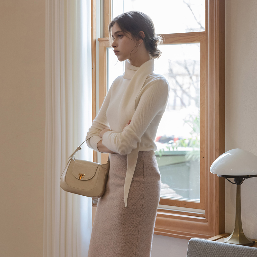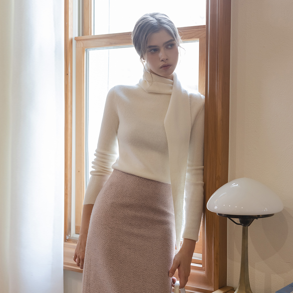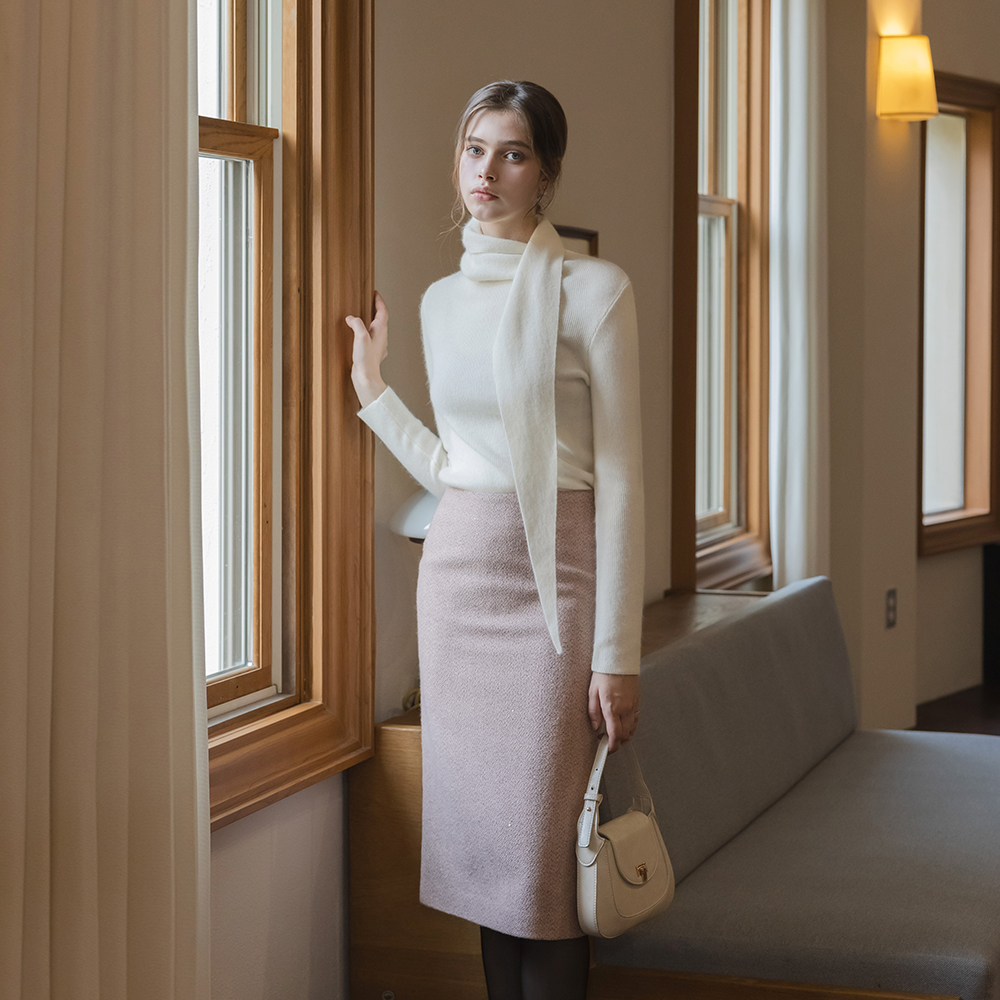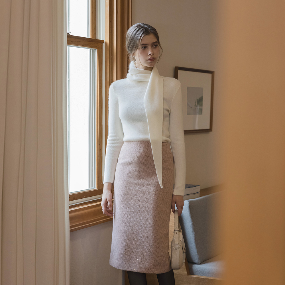Rosy mix Wool H-line Tweed Set-up Skirt