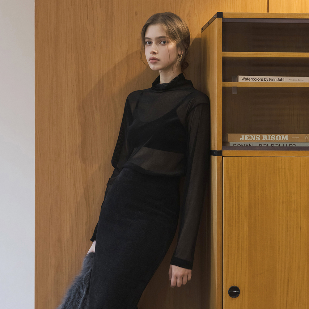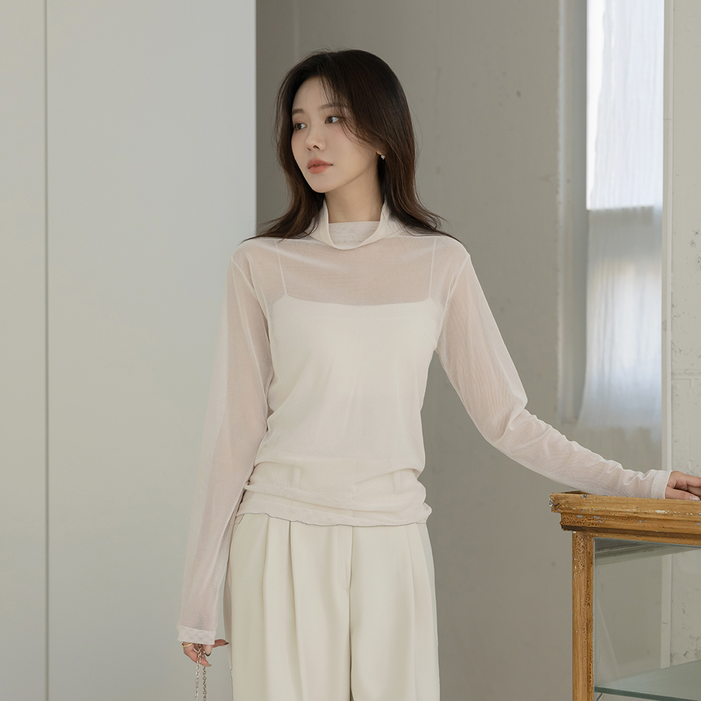 Velvet Mesh layered Turtleneck