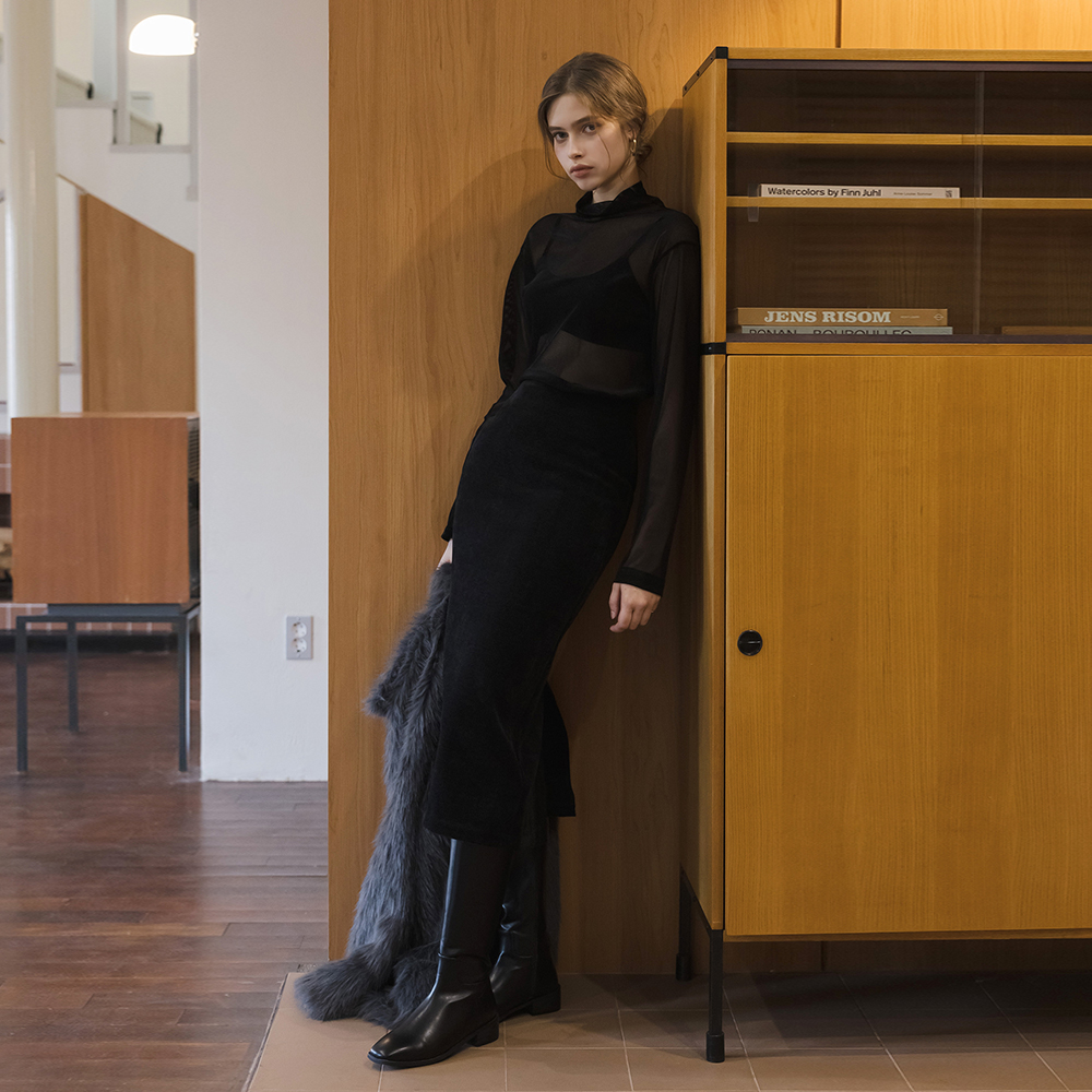 Velvet H-line Span Long Skirt
