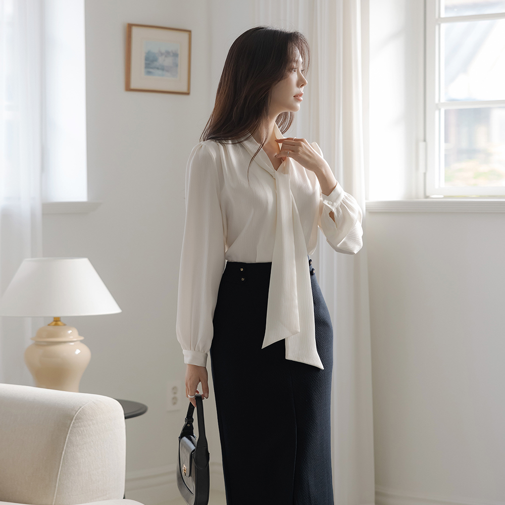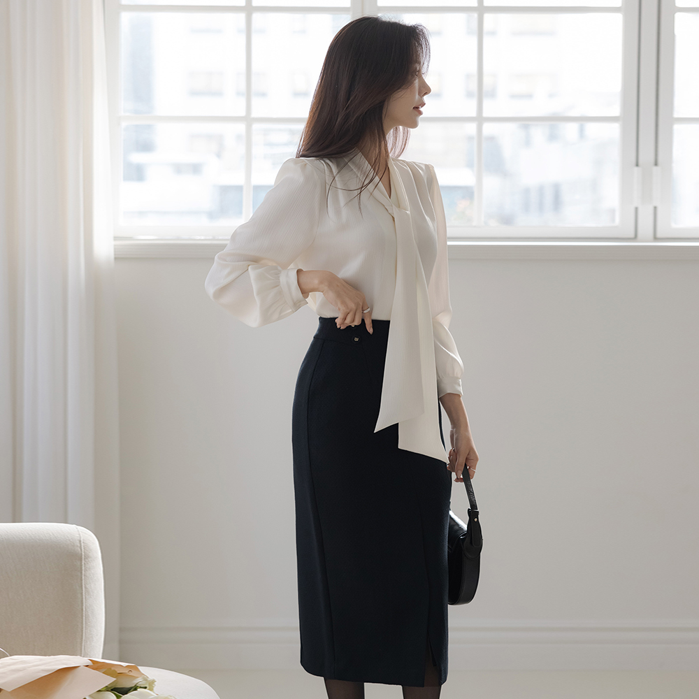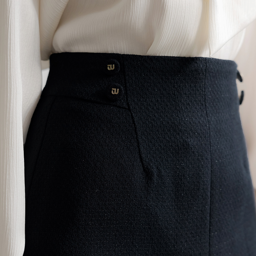 Eli pearl Button Point H-line Tweed Set-up Skirt