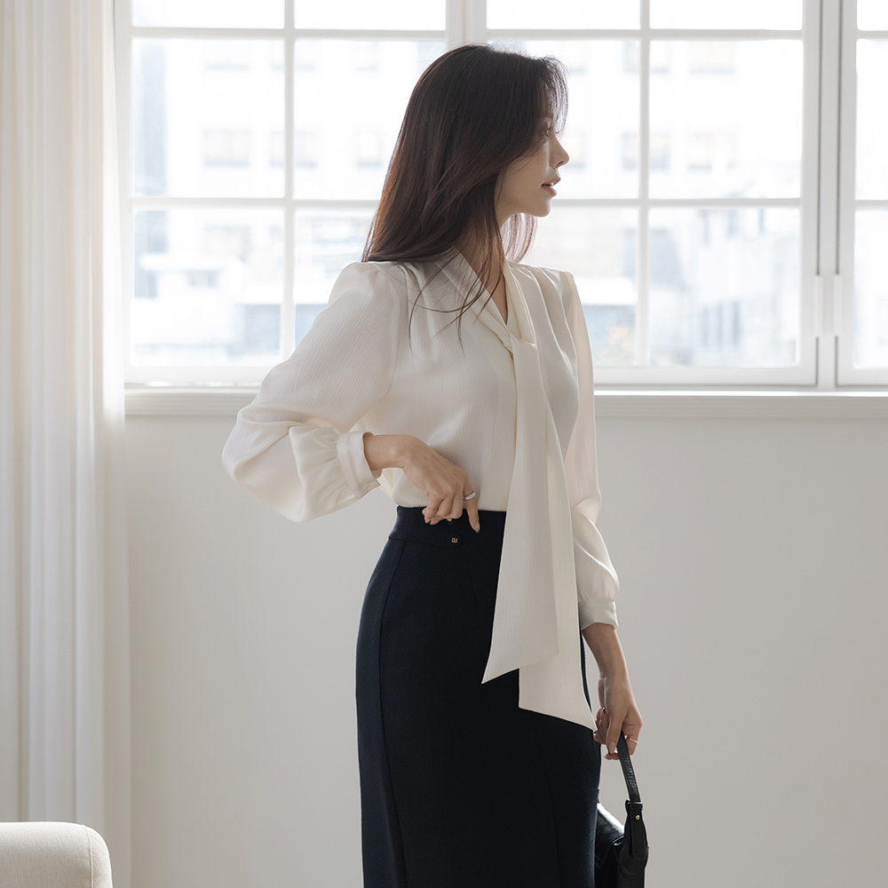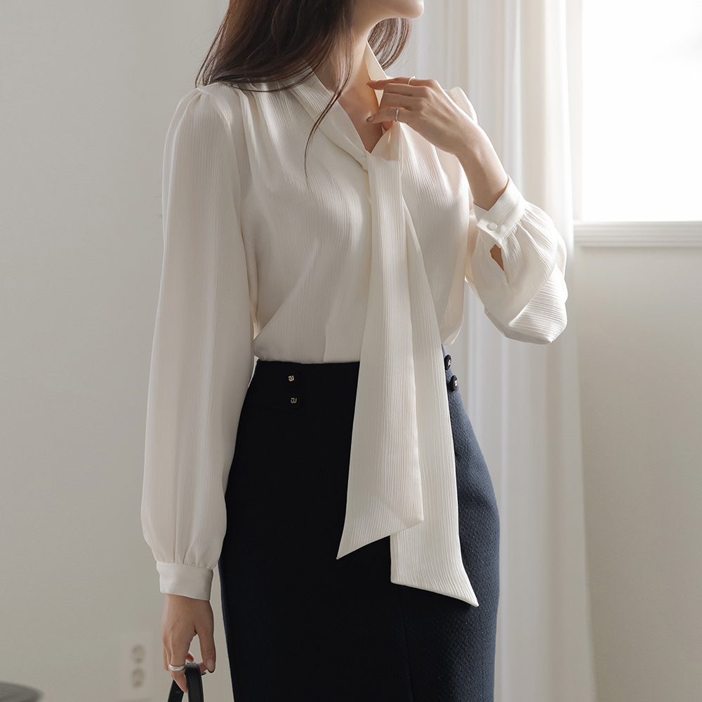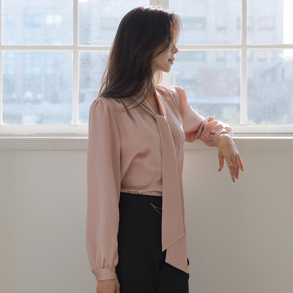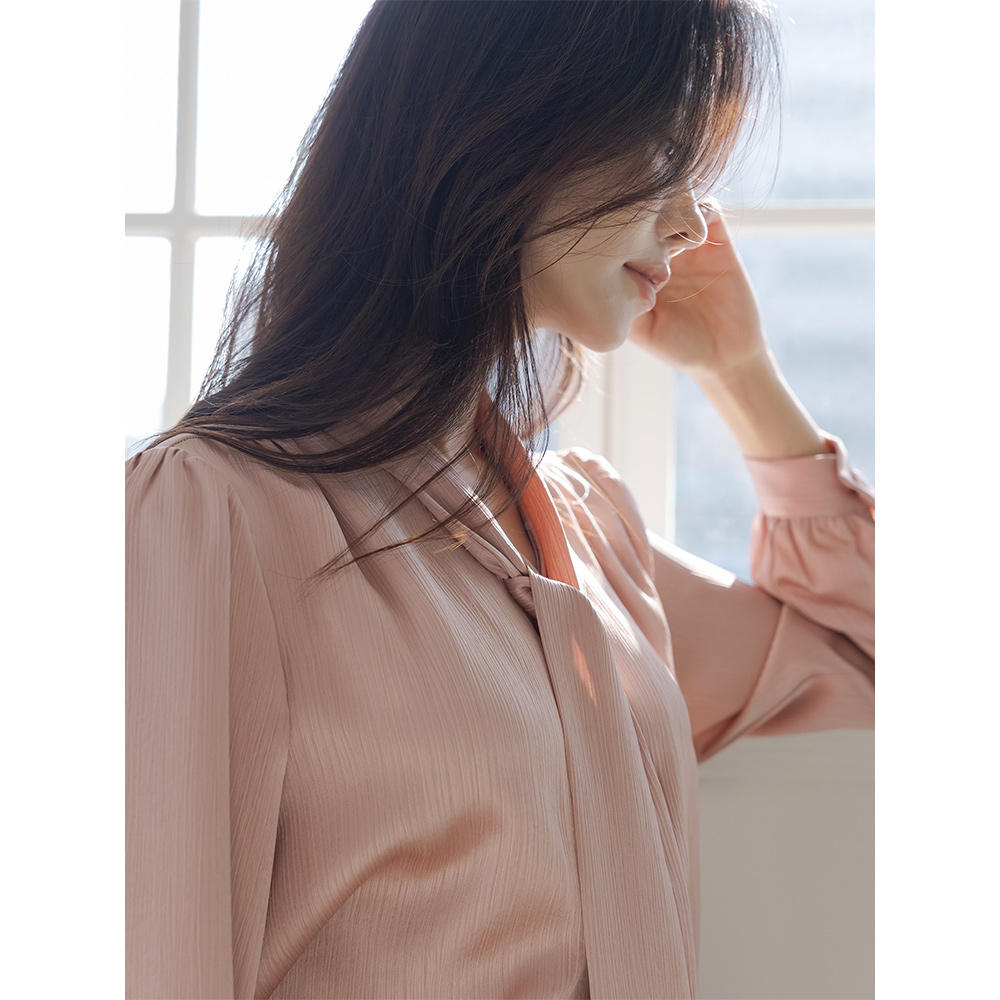 Rose Skily Satin Tie Neck Wrinkle Blouse