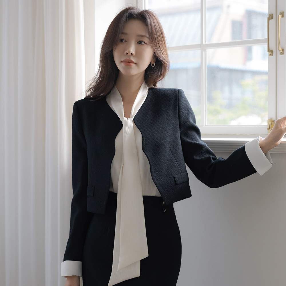 Eli pearl Sleeves Color Combination 물결 Tweed Set-up Jacket