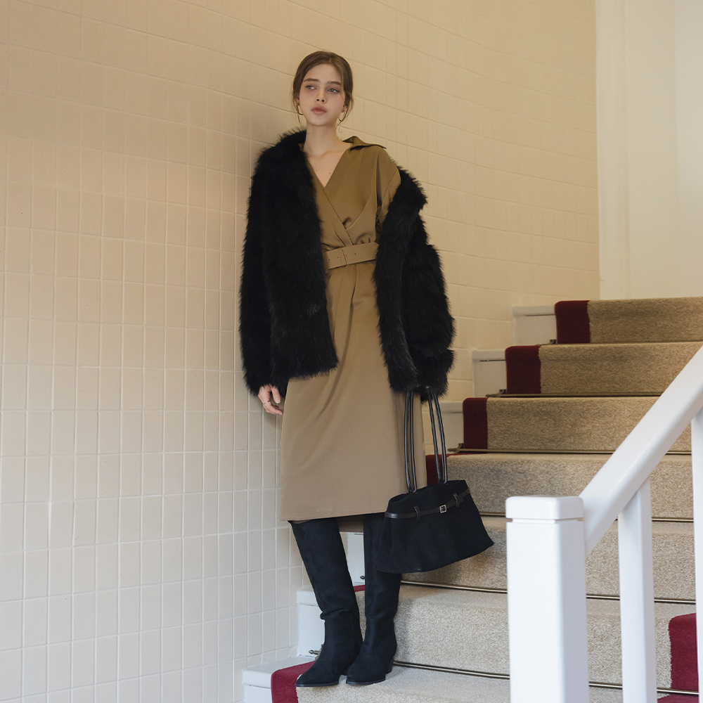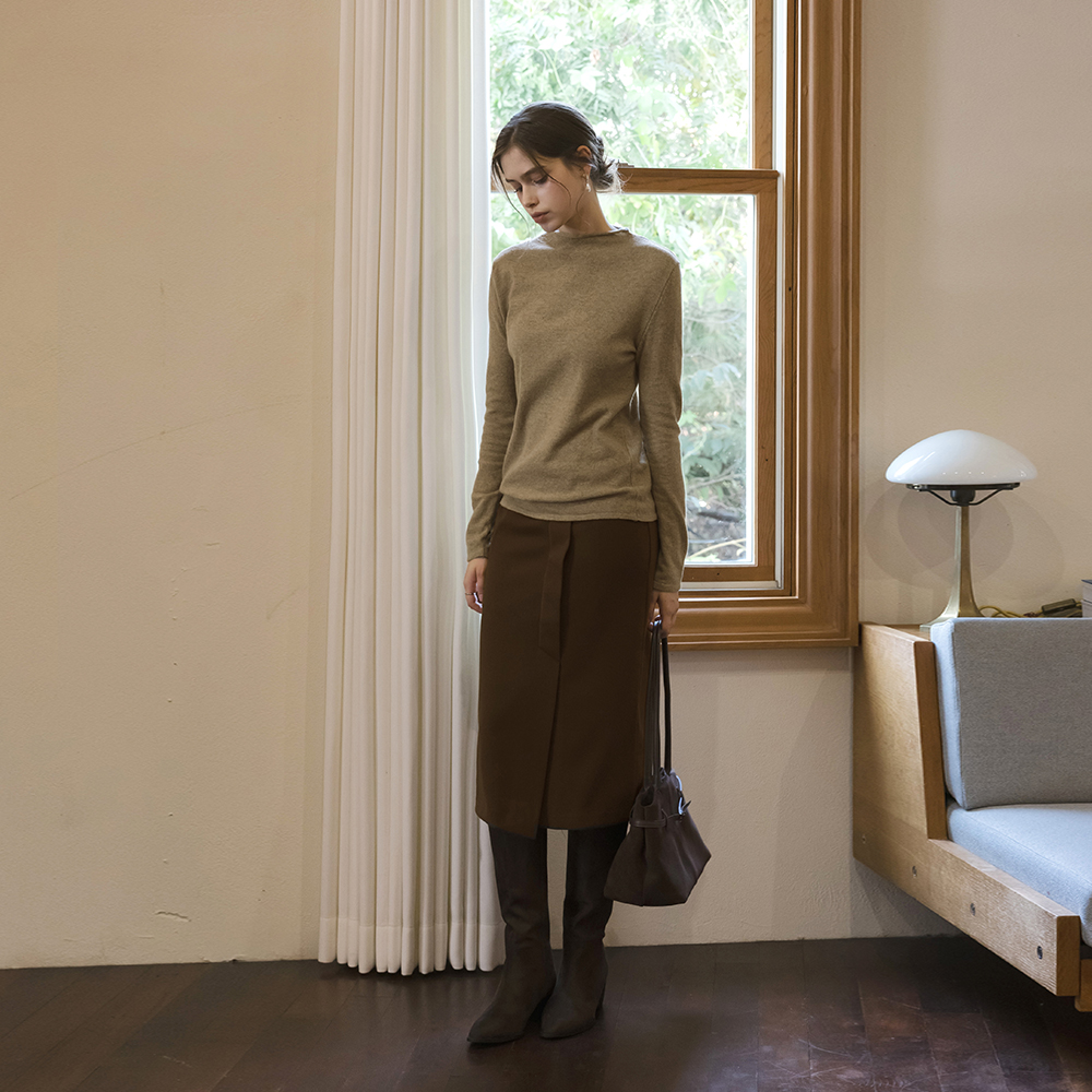 Half-Neck Wool Warmer Knit(+Belt)