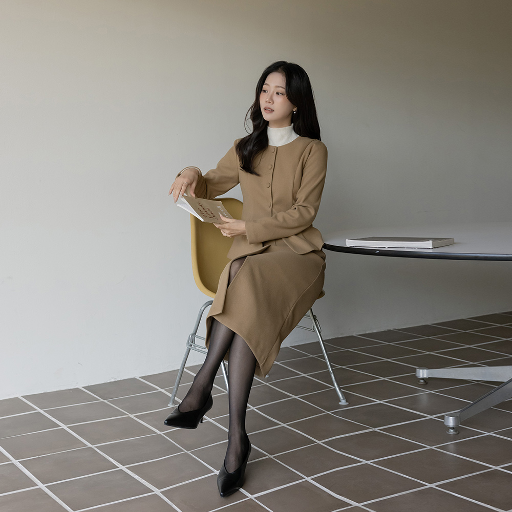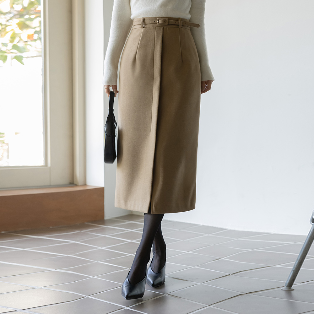 ODE Fleece H-line Set-up Long Skirt(+Belt)