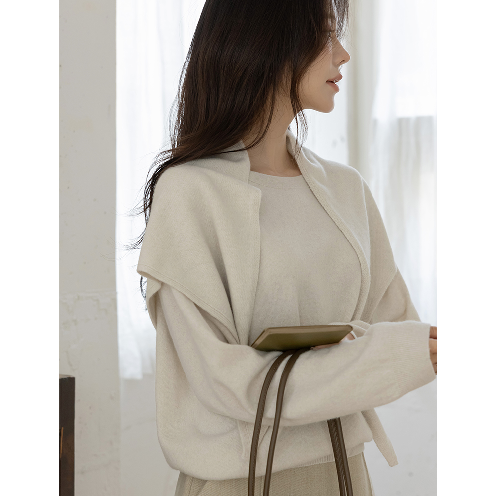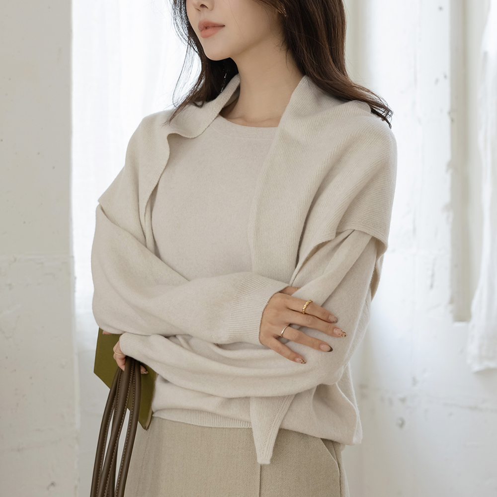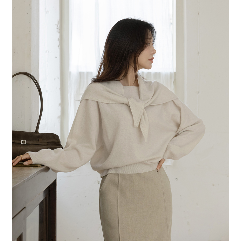 Lip-Neck Whole Garment Cashmere&Wool Knit
