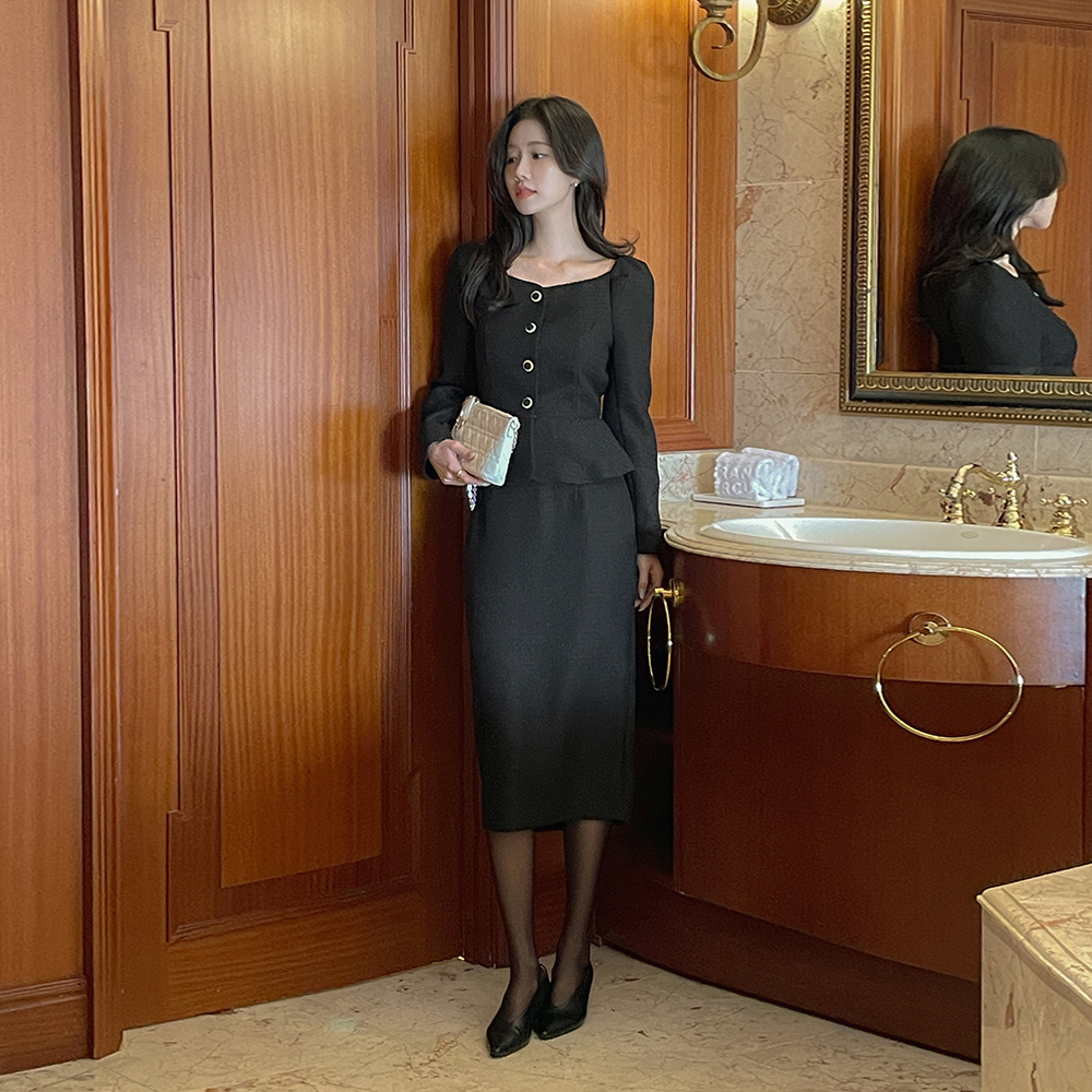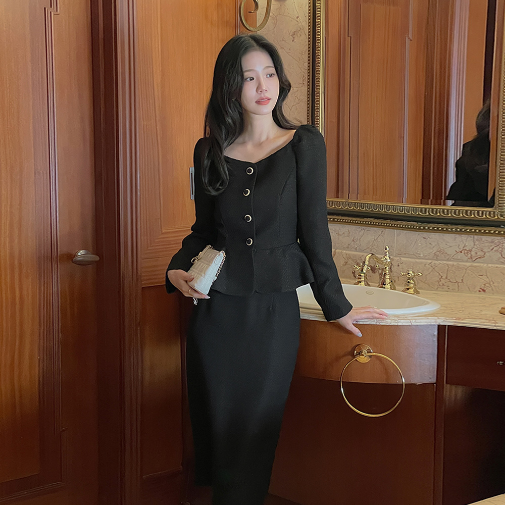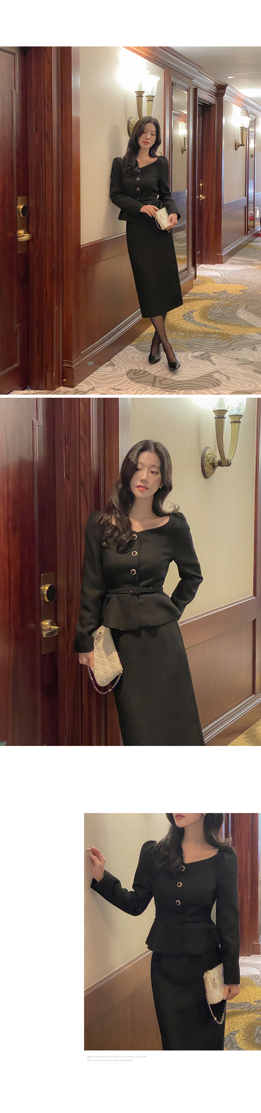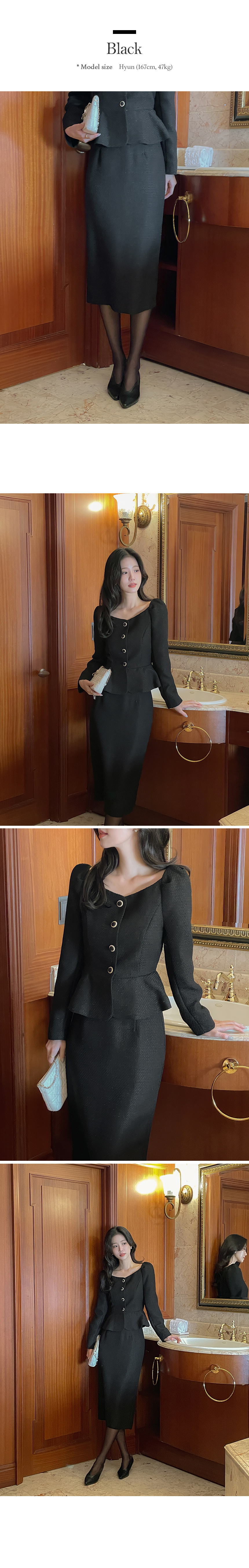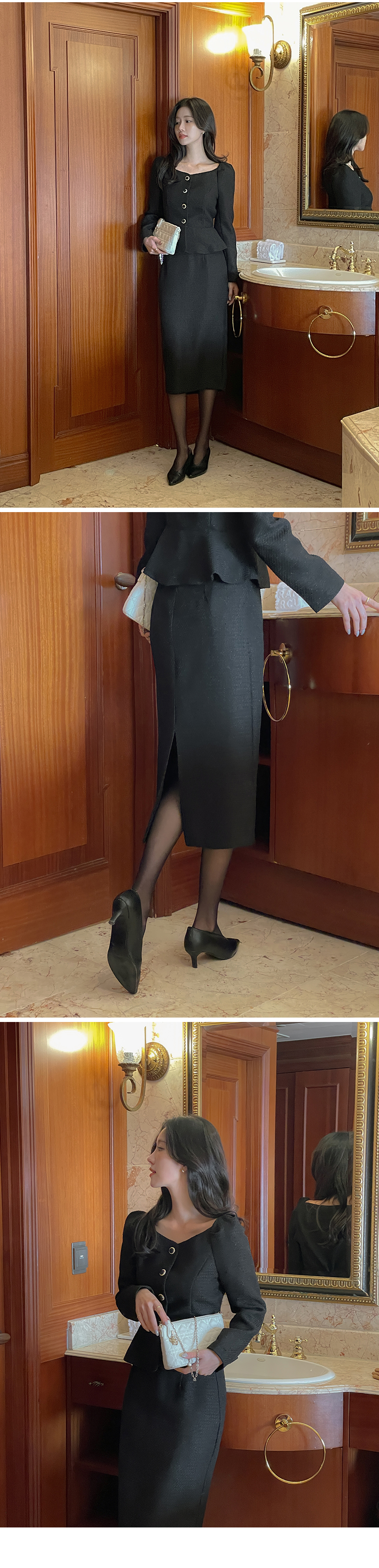 Tweed Peplum Set-up Blouse(+Belt)