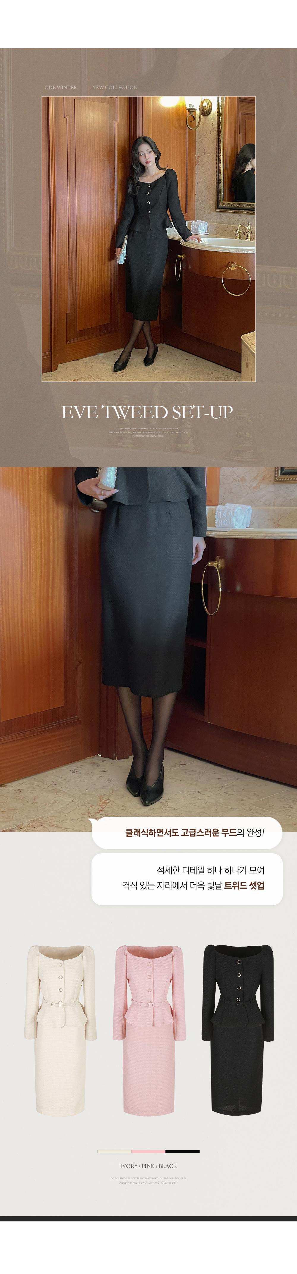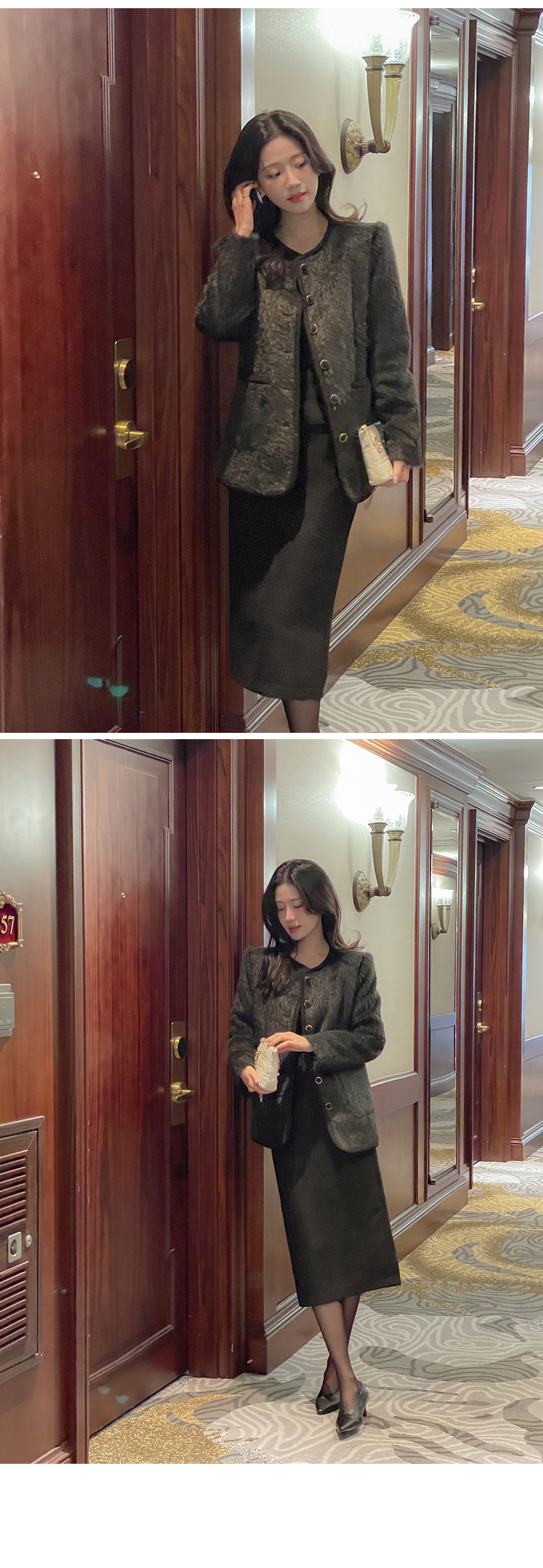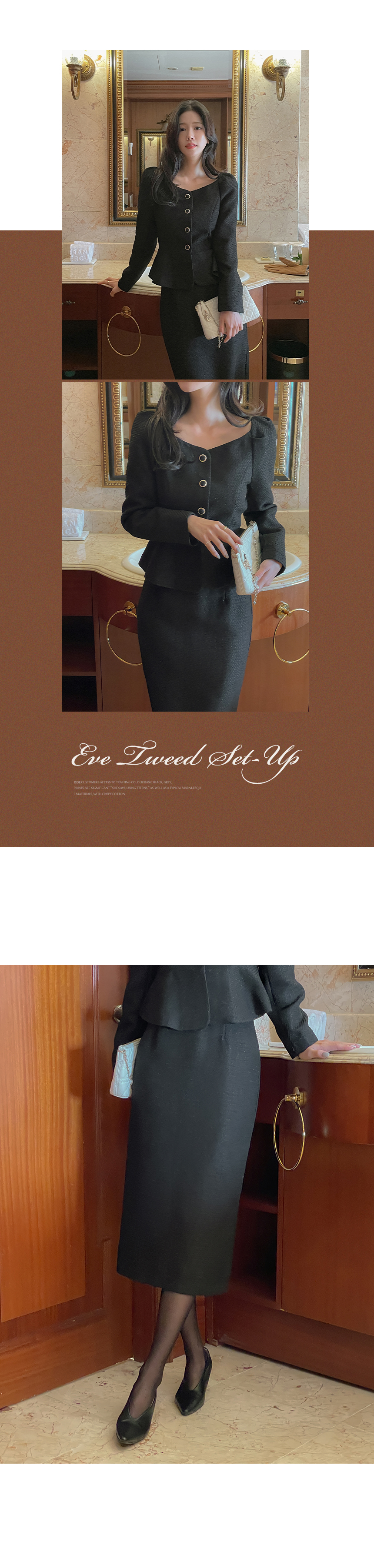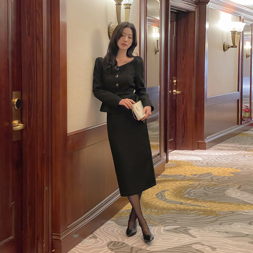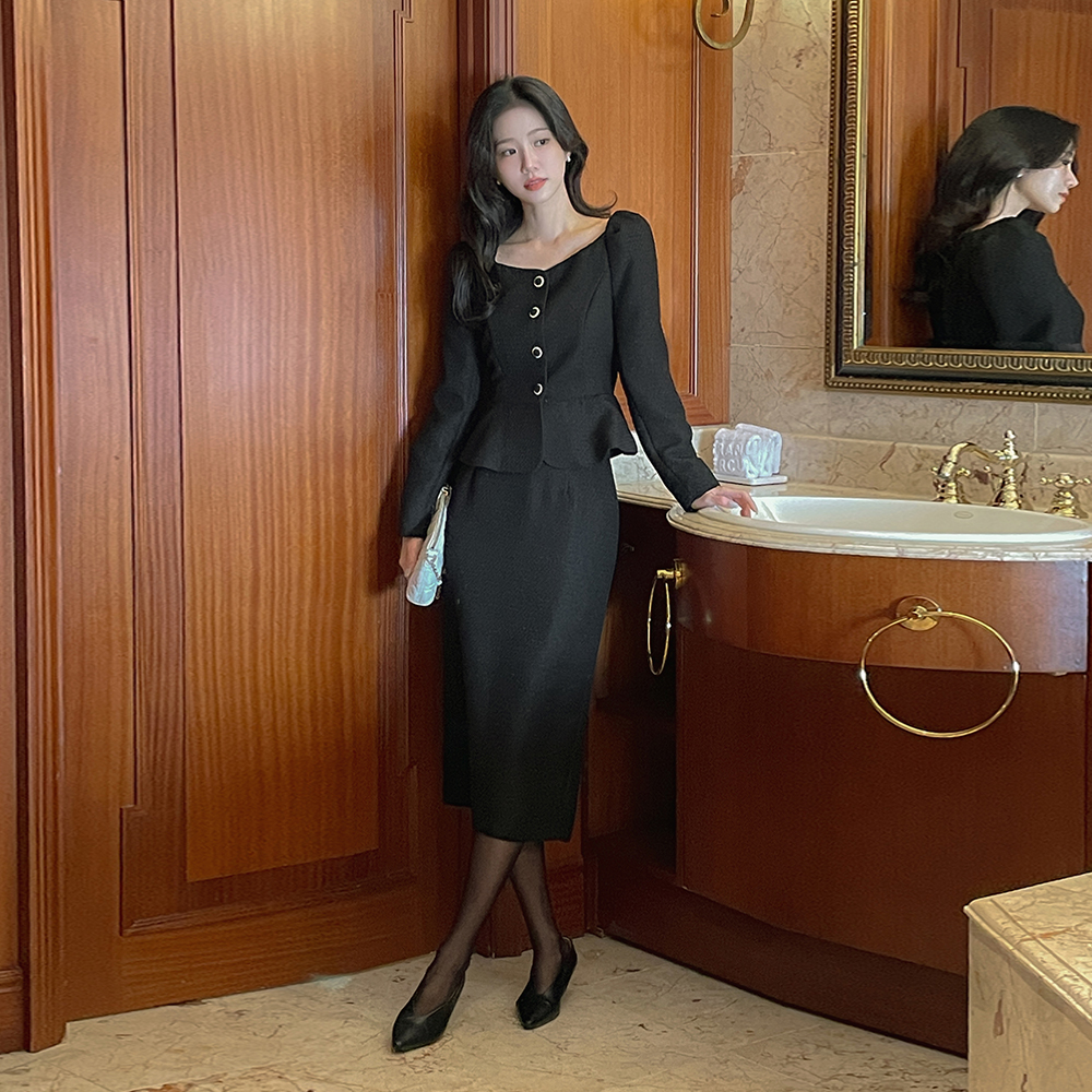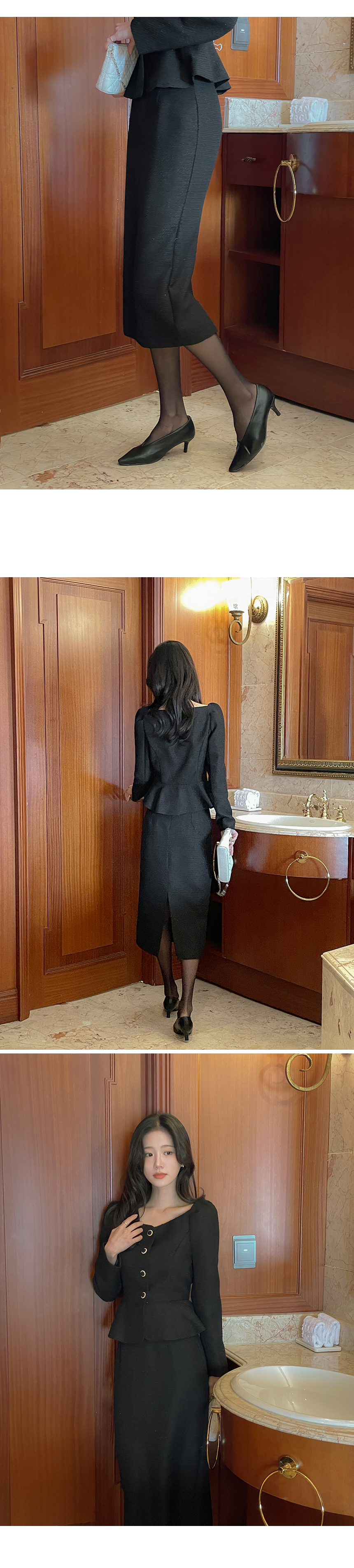 Tweed Peplum Set-up Blouse(+Belt)
