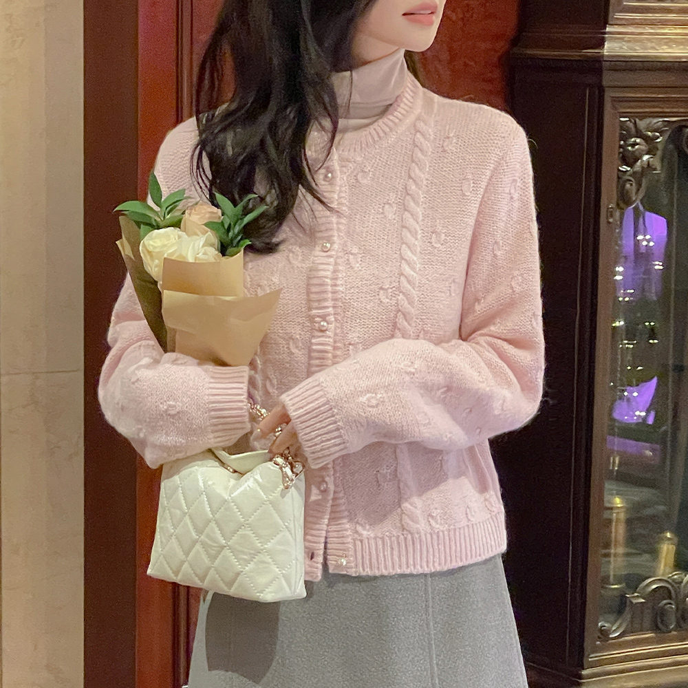 Candy Alpaca&Wool Pearl Buttons Cardigan