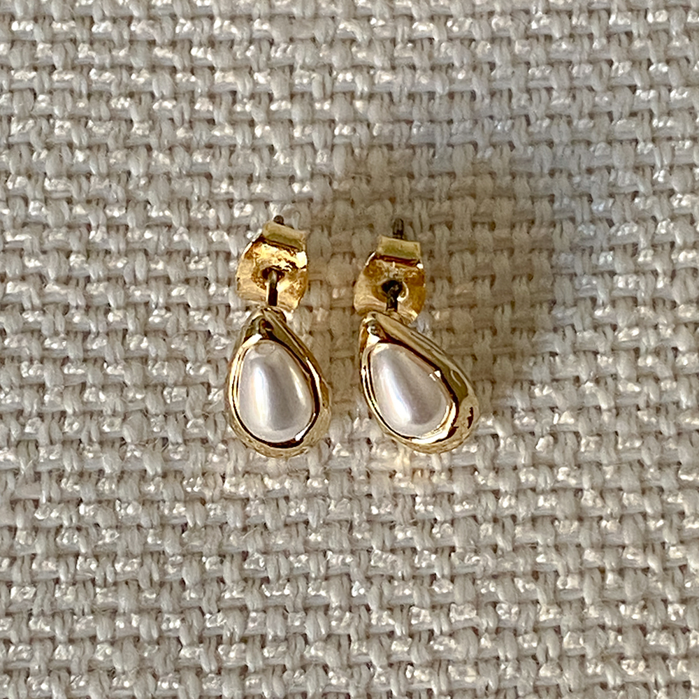 Simple Gold Rounding Pearl Earring