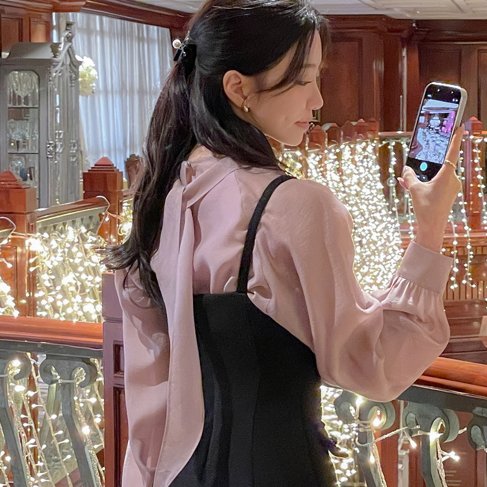 Scarf-Neck Gold Necklace layered Blouse