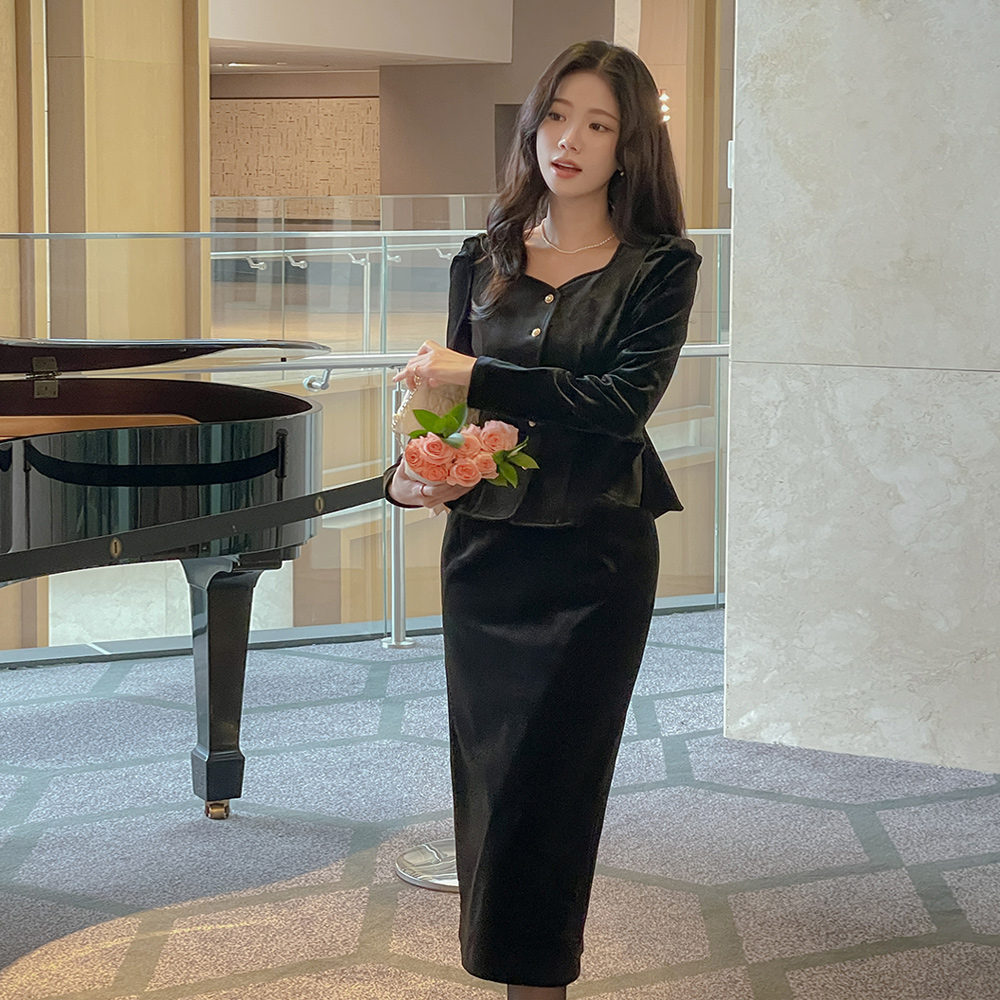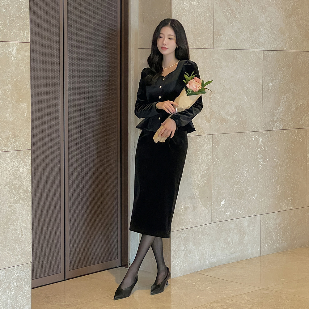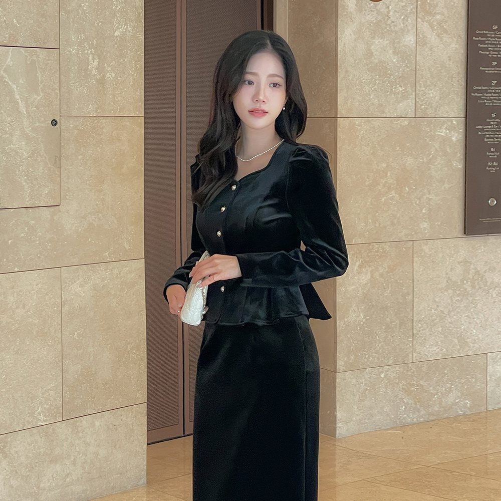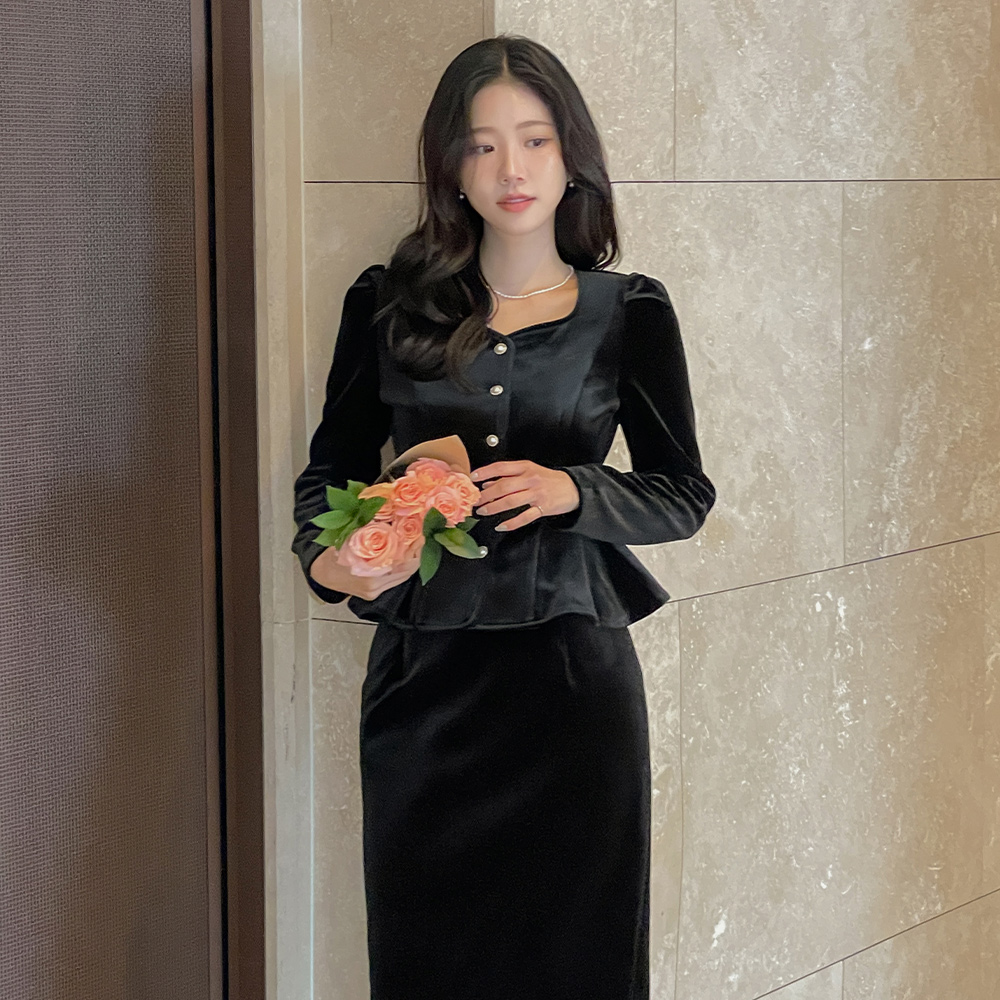 크리스 Velvet H-line Set-up Skirt