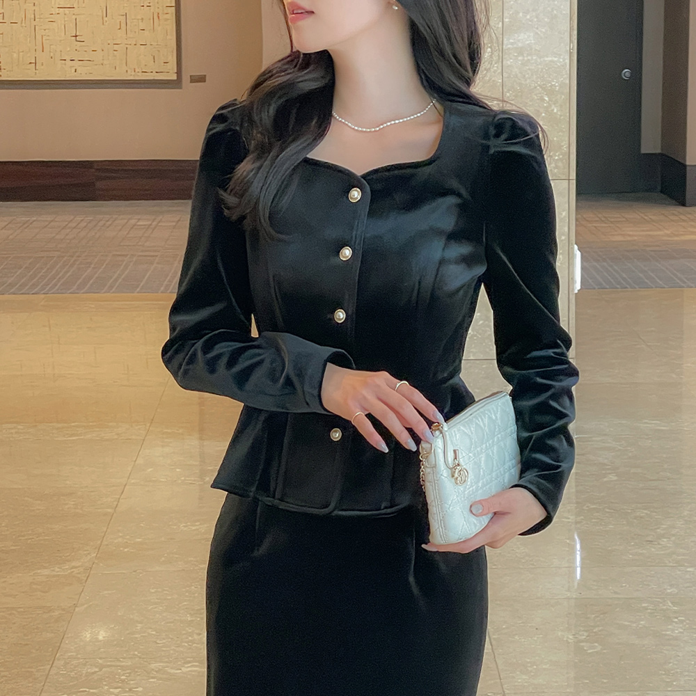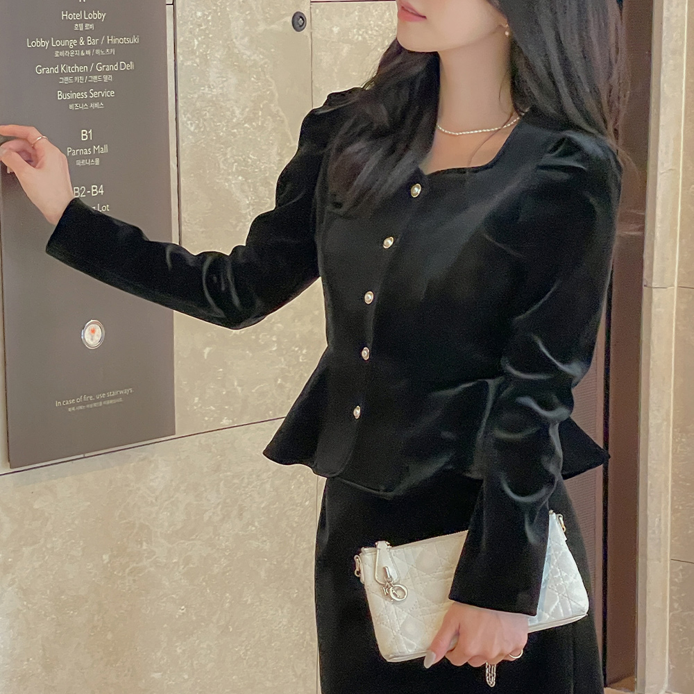 Velvet Peplum Puff Set-up Blouse