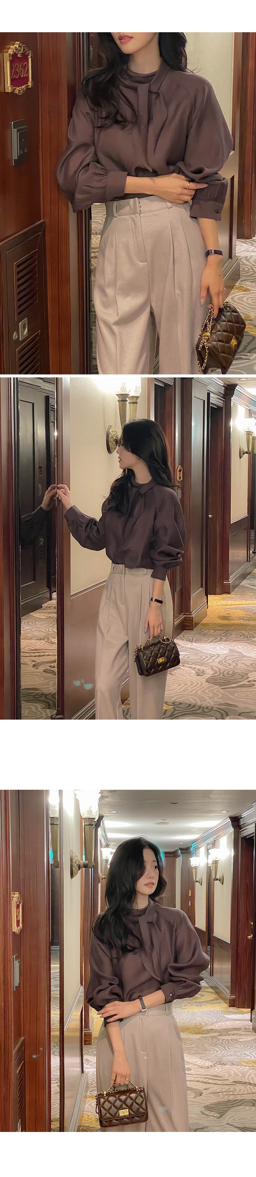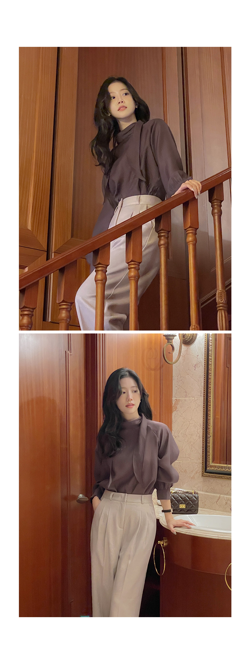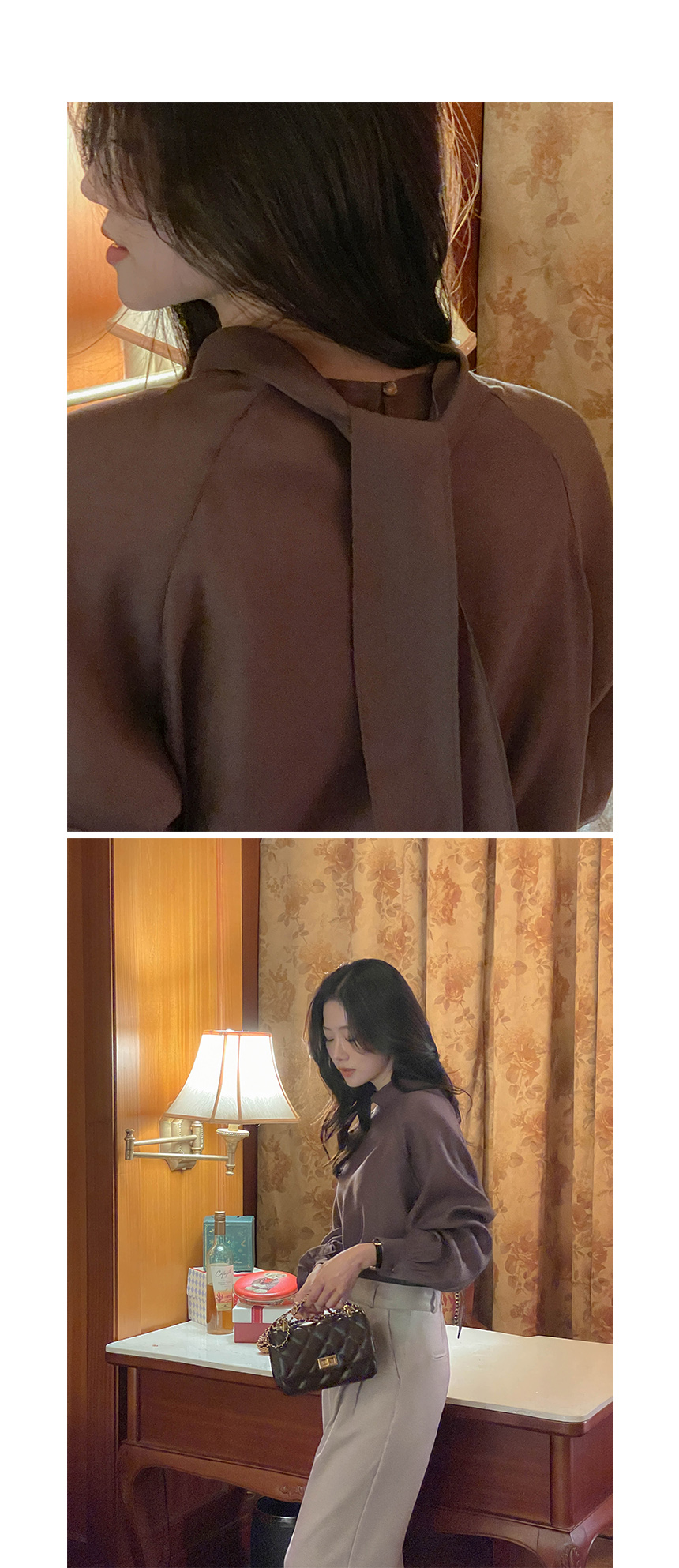 Merry Tie Neck Tencel Long-sleeve Blouse