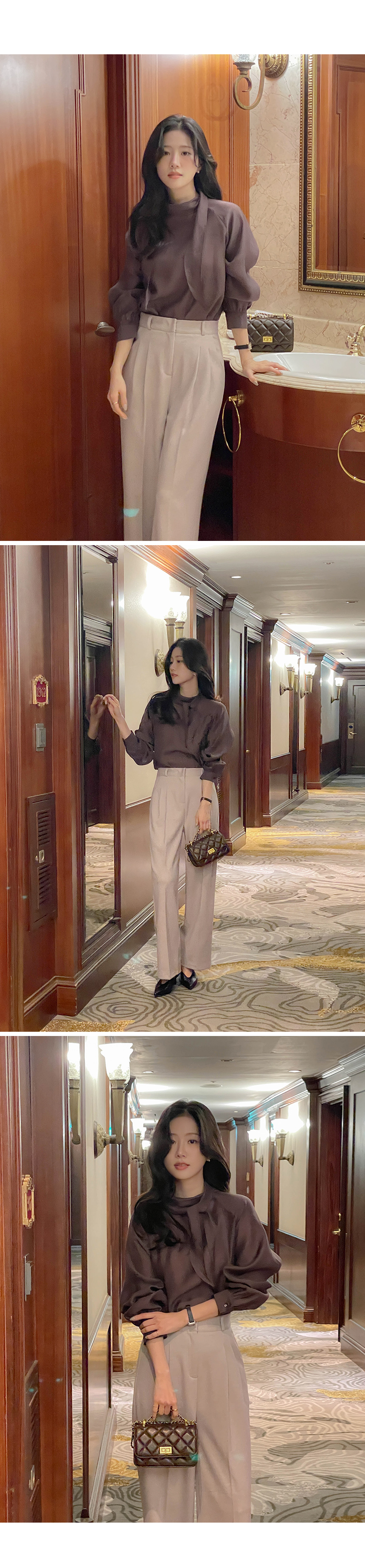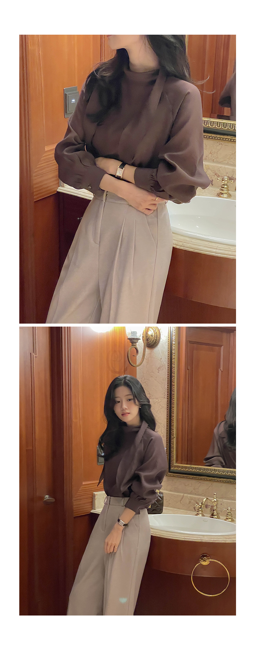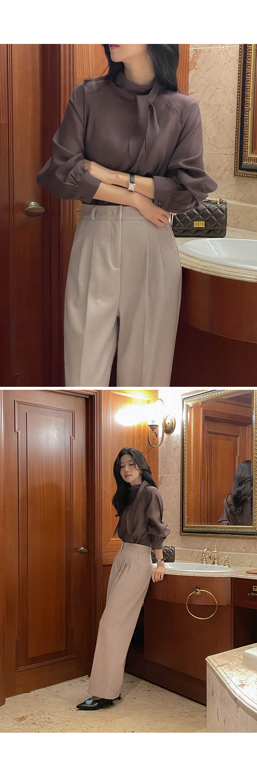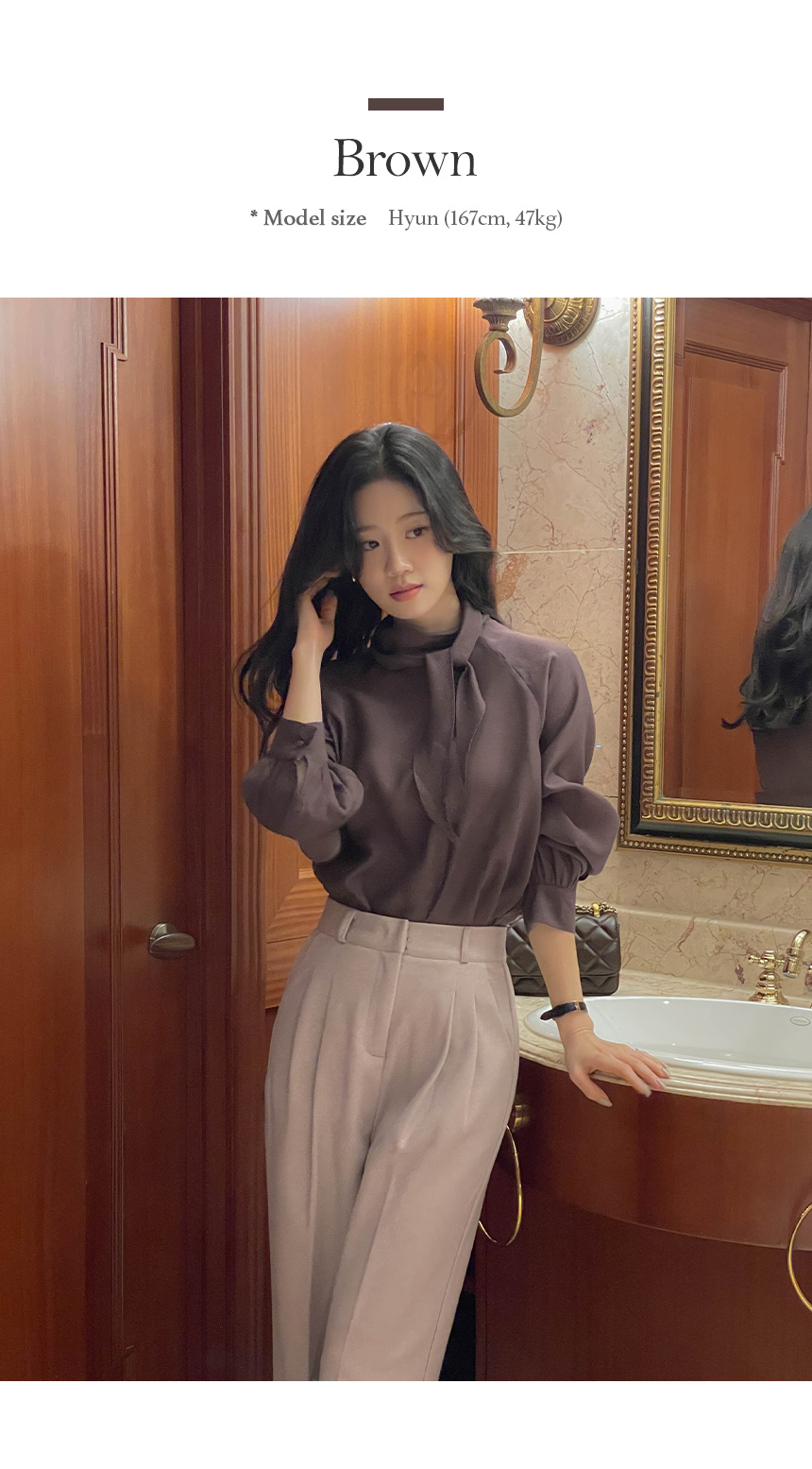 Merry Tie Neck Tencel Long-sleeve Blouse