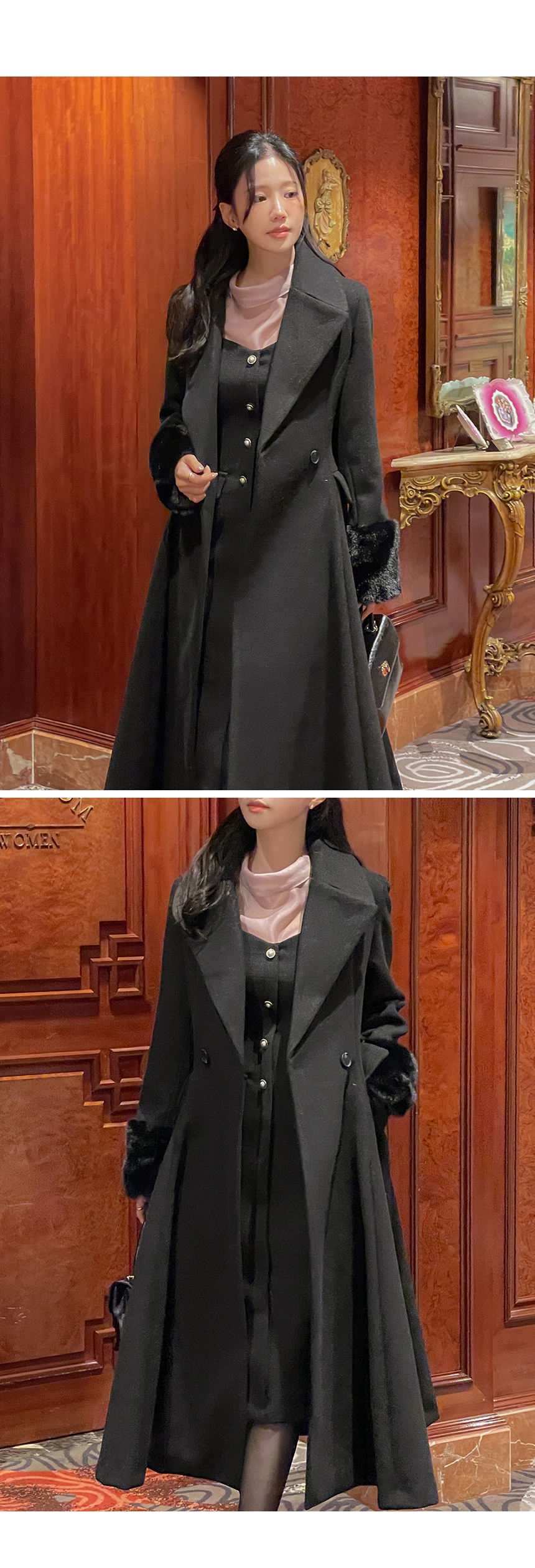Feminine Sleeves Fur Color Combination Quilting Long Coat(+Belt)