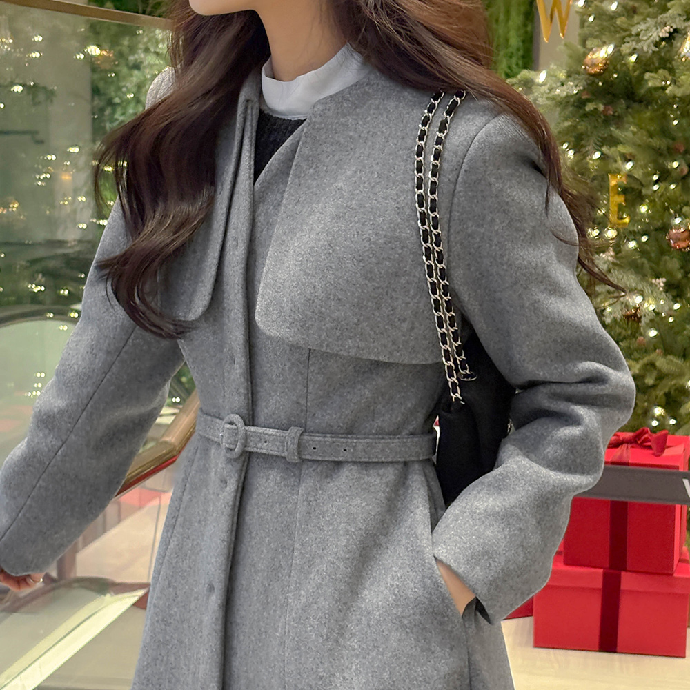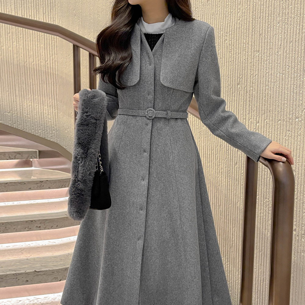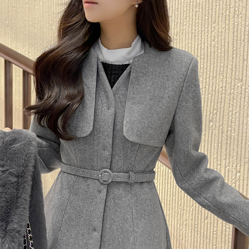 Feminine wing Slim Line Long Coat(+Belt)