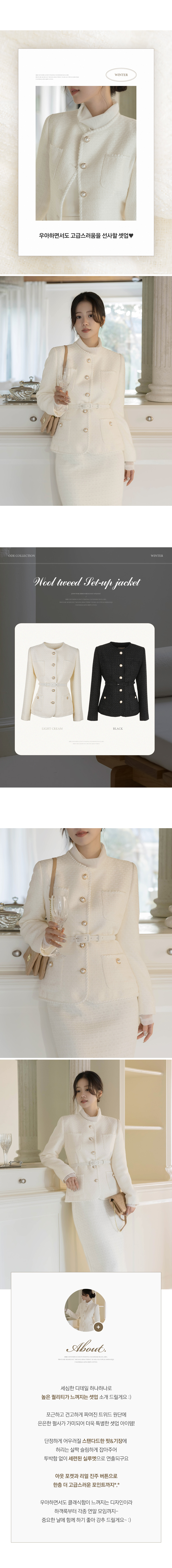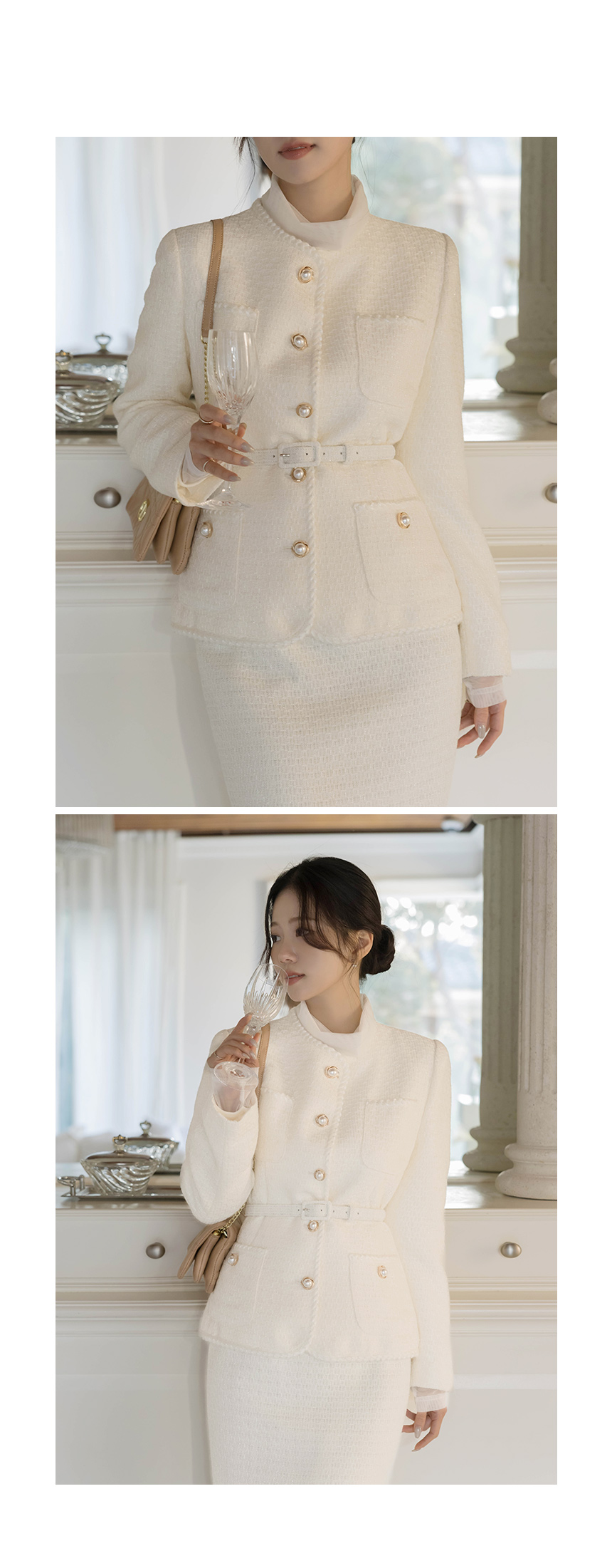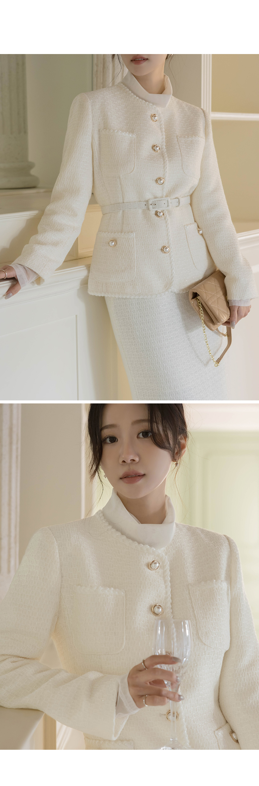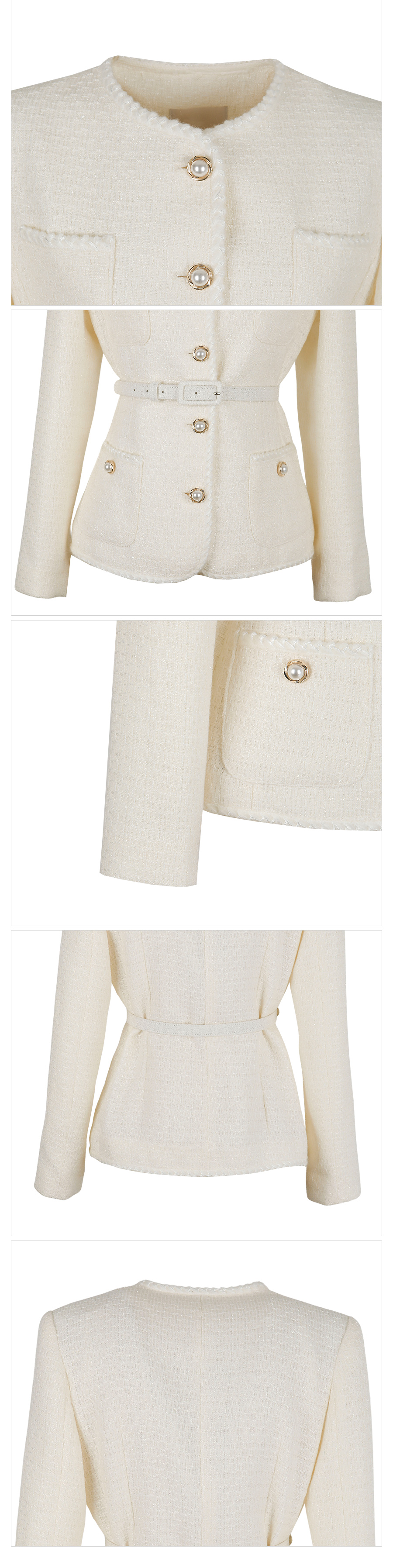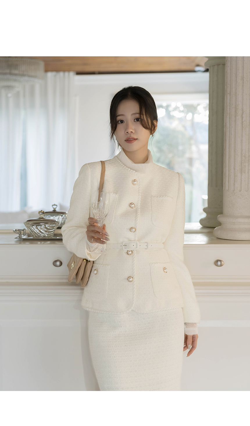 Shine Slim Line Wool Tweed Set-up Jacket(+Belt)