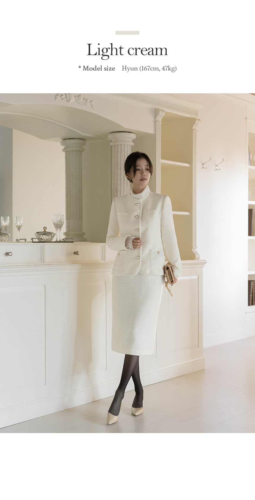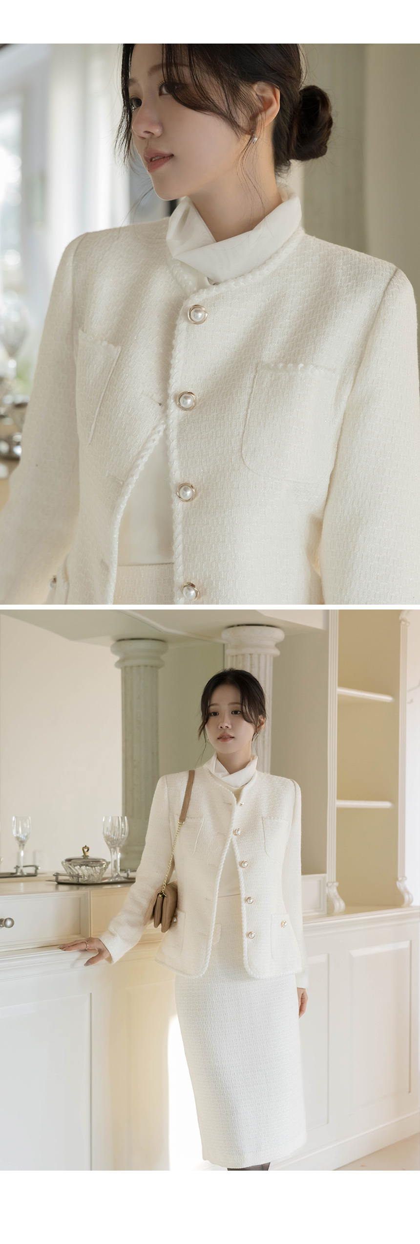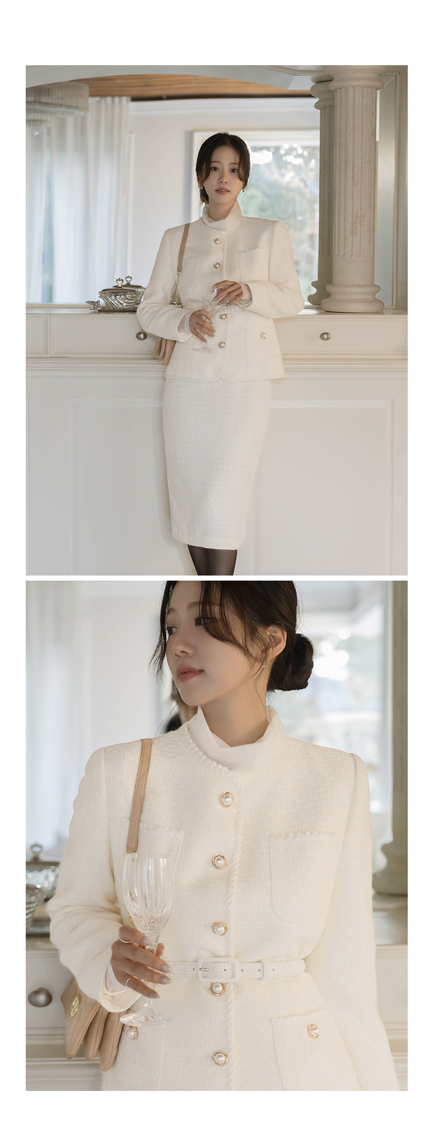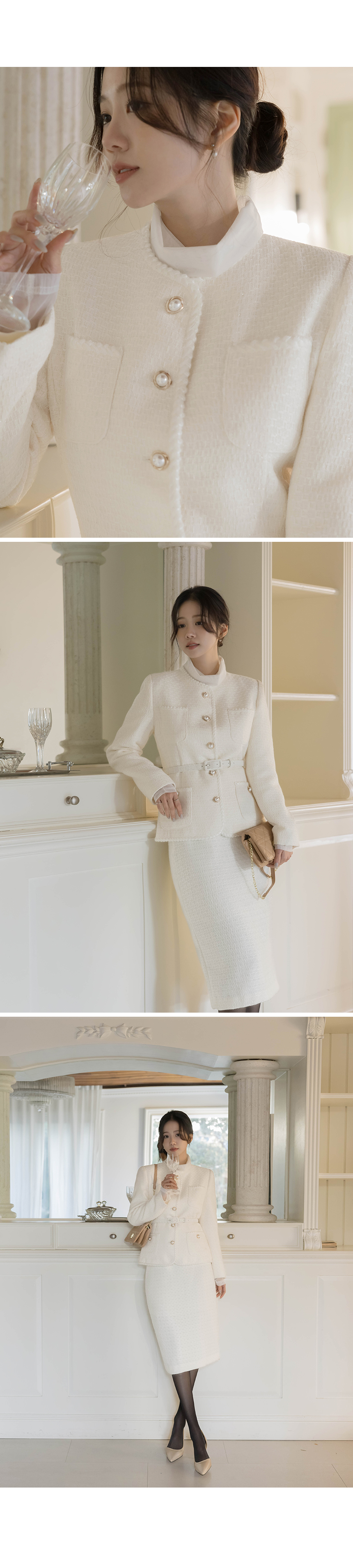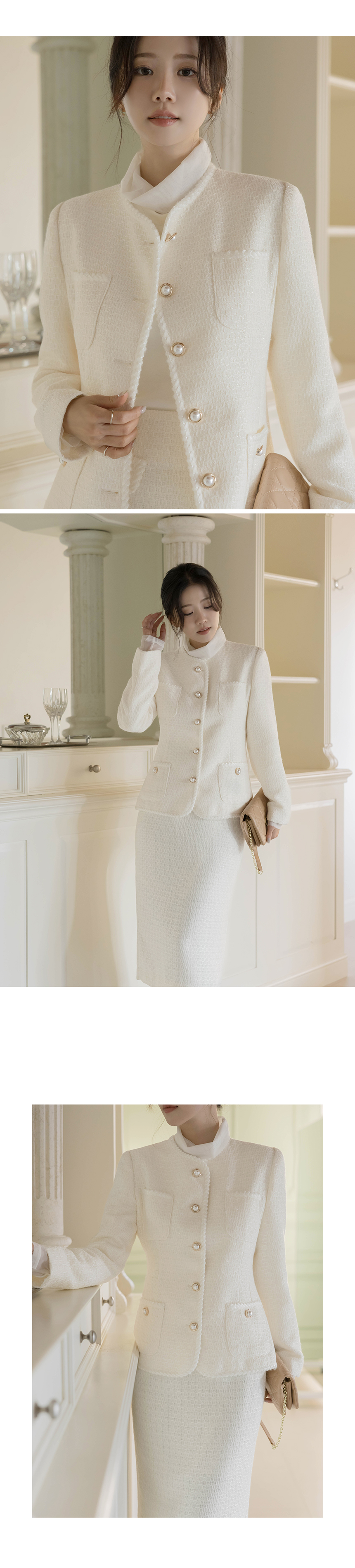Shine Slim Line Wool Tweed Set-up Jacket(+Belt)