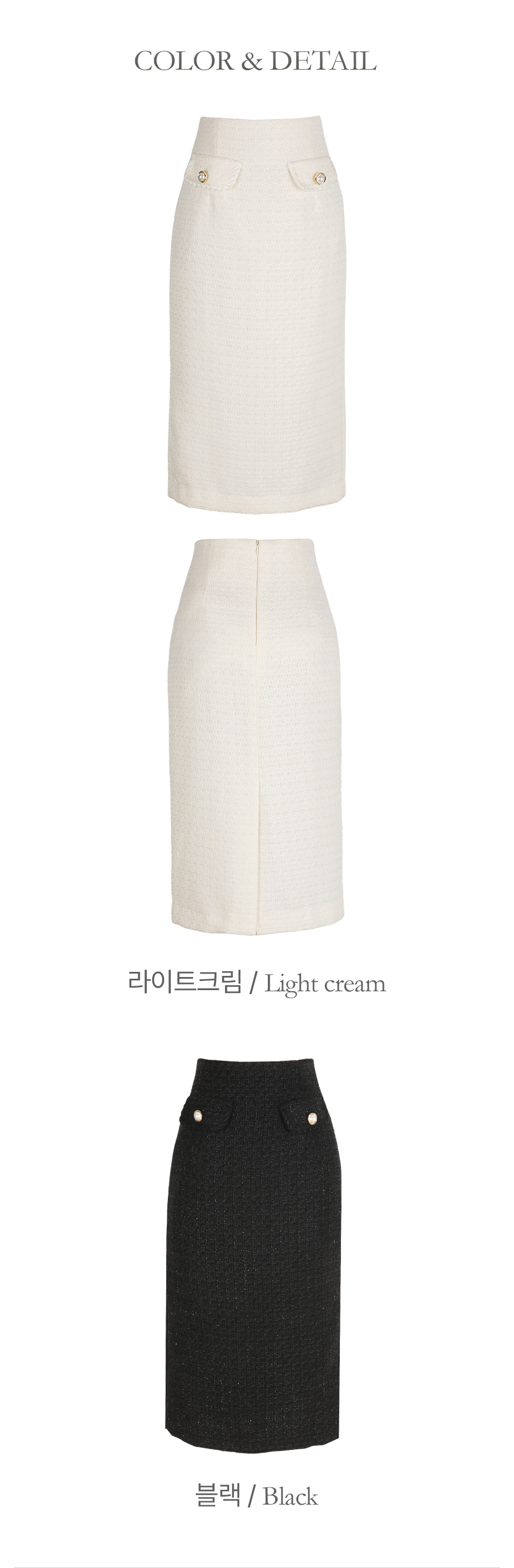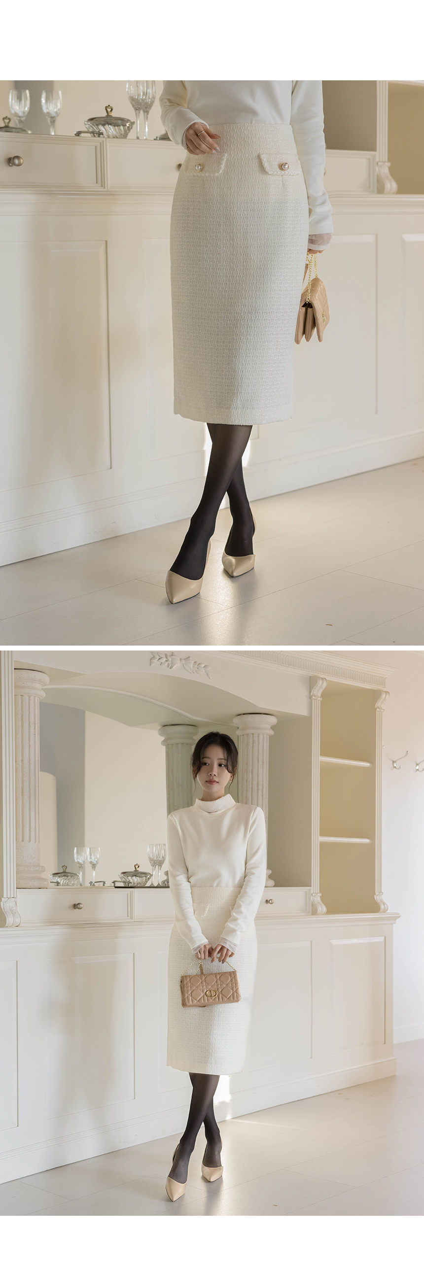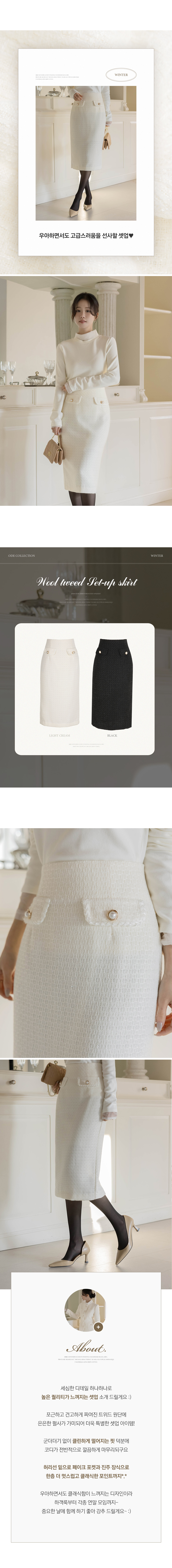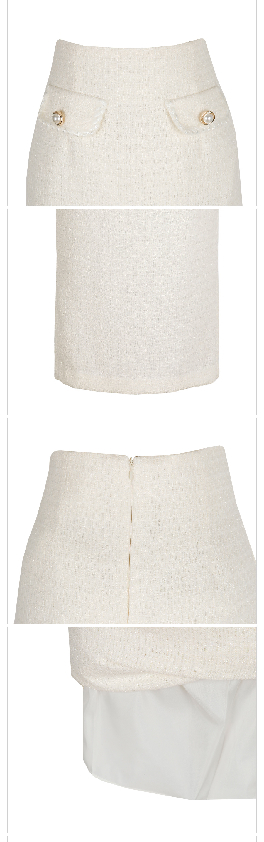 Shine Pocket Wool Tweed H-line Set-up Skirt
