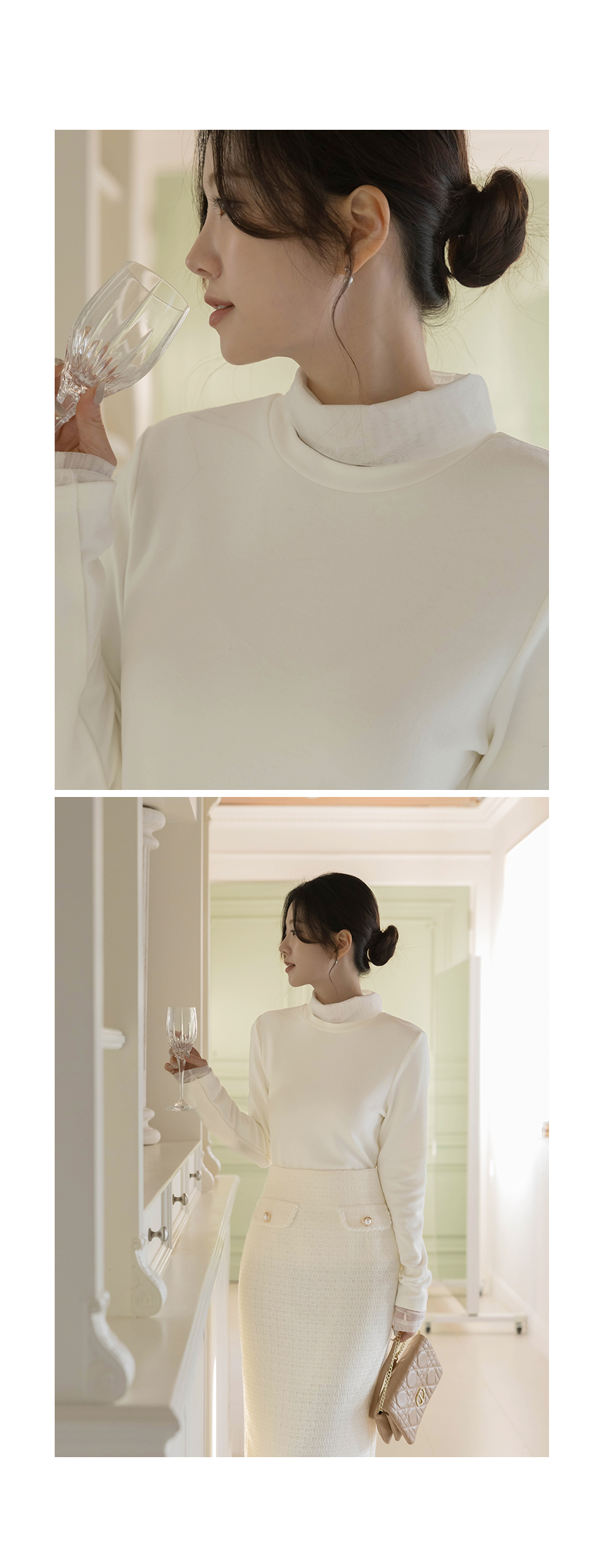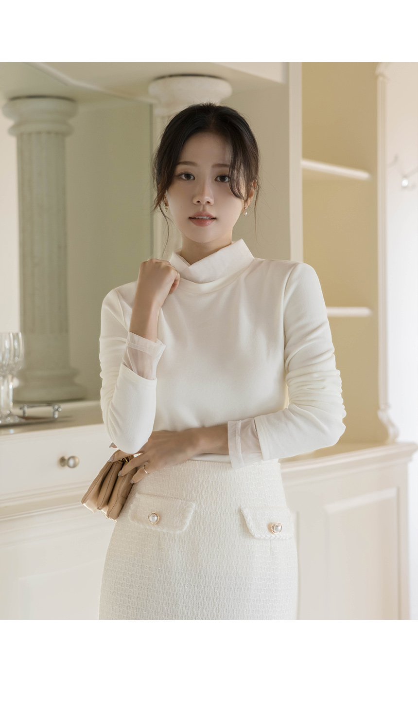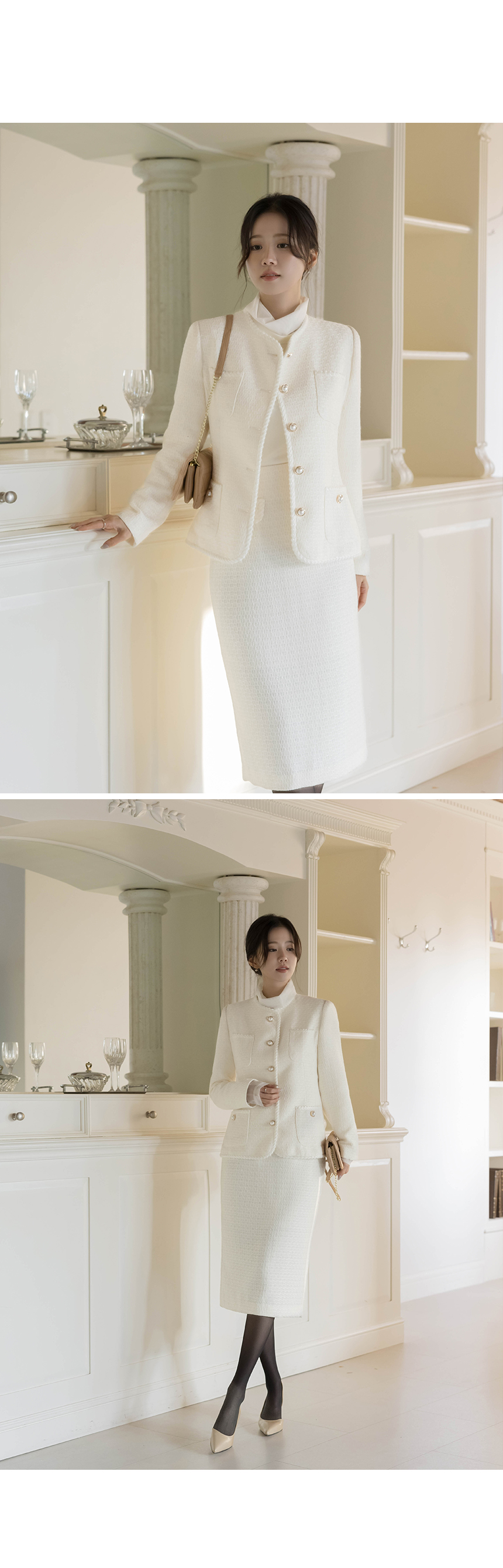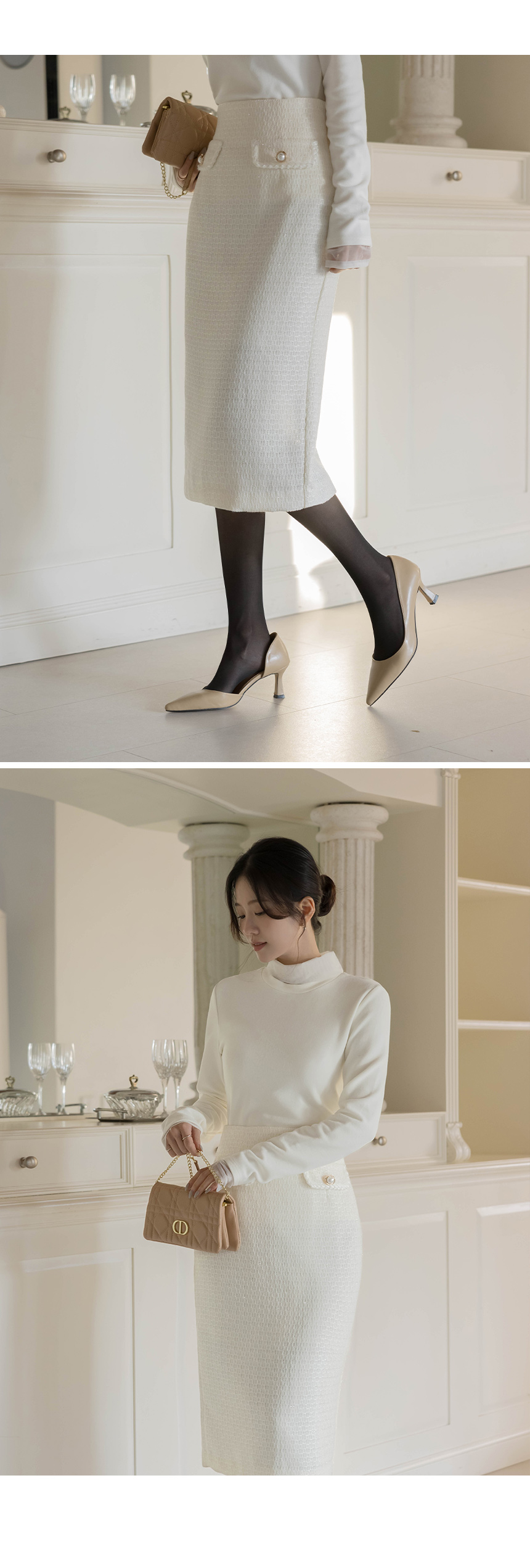 Shine Pocket Wool Tweed H-line Set-up Skirt