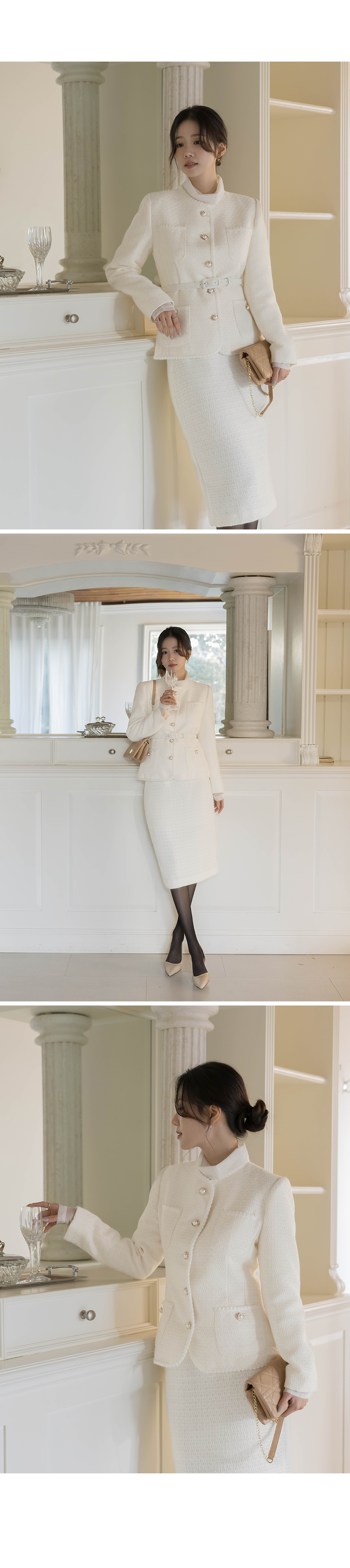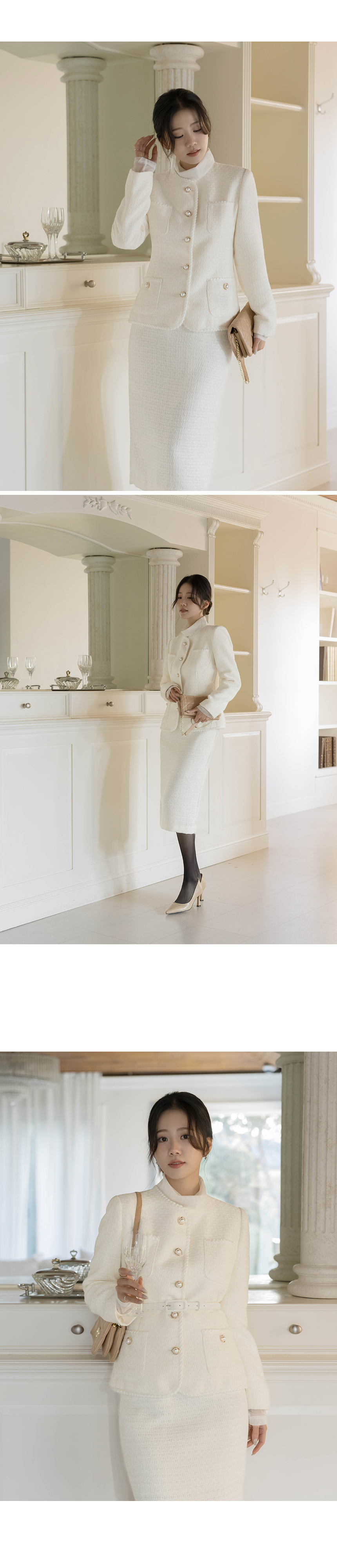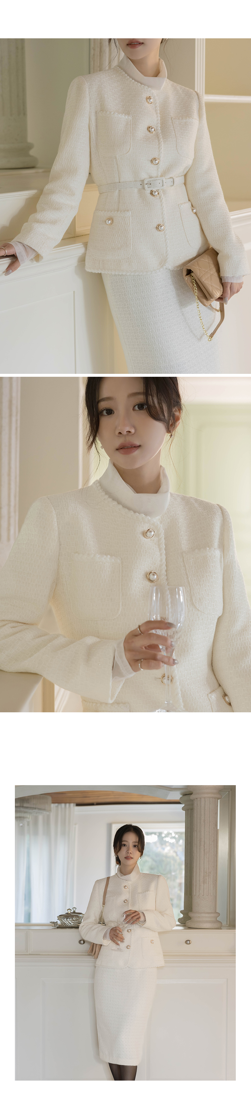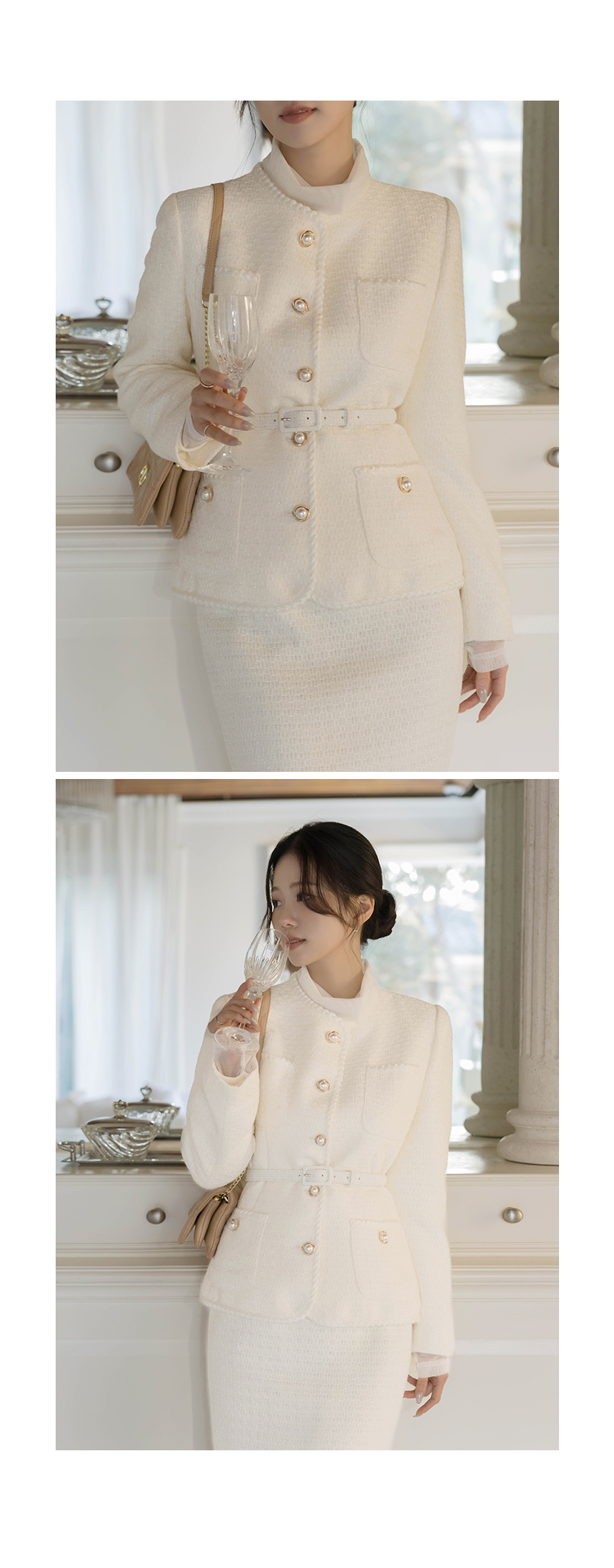 Shine Slim Line Wool Tweed Set-up Jacket(+Belt)