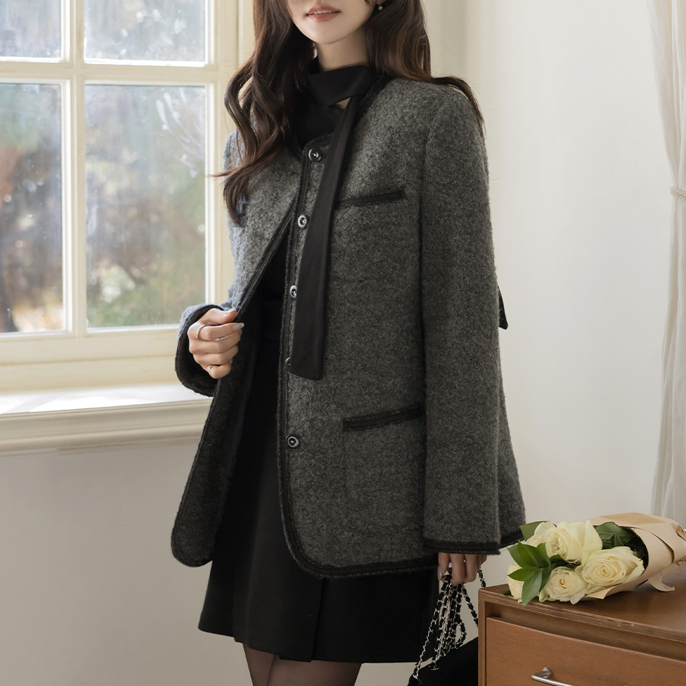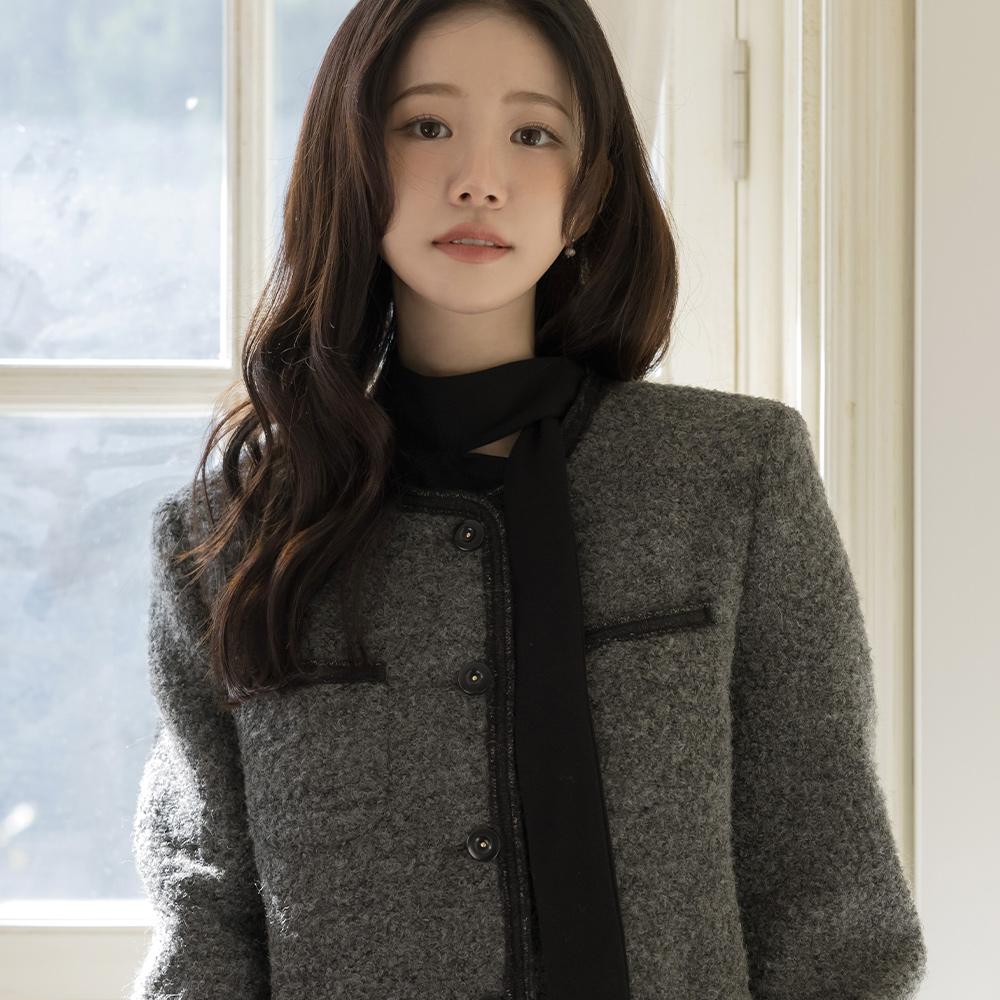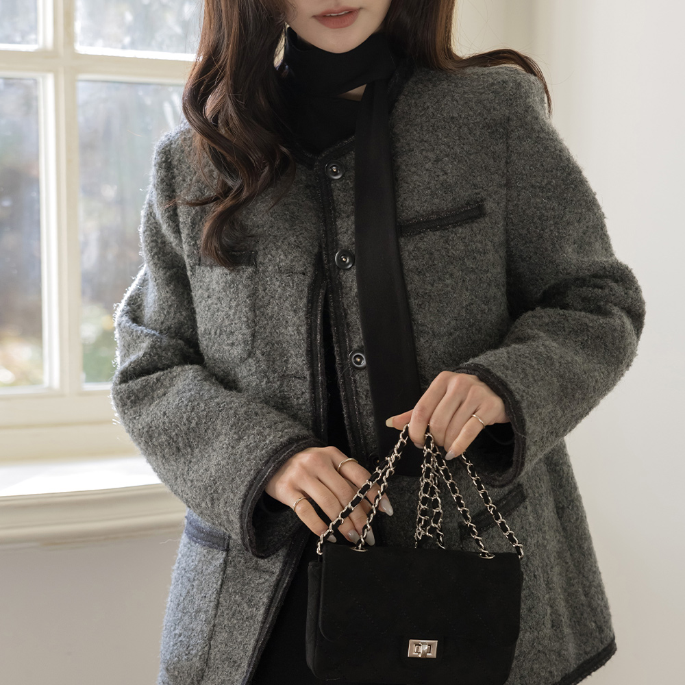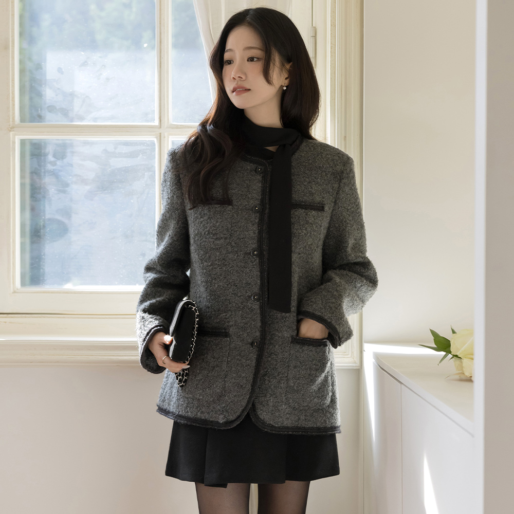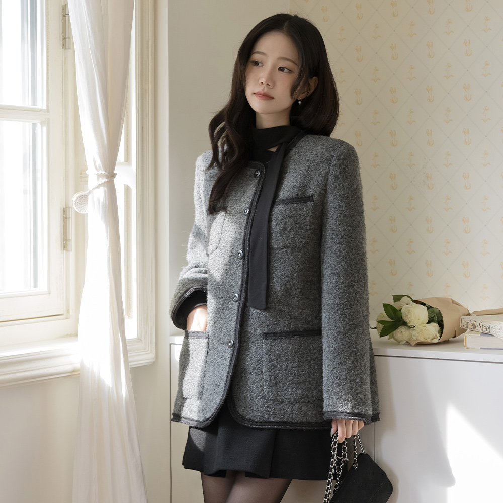 Bouclé Raund neck Quilting Wool Harp Jacket